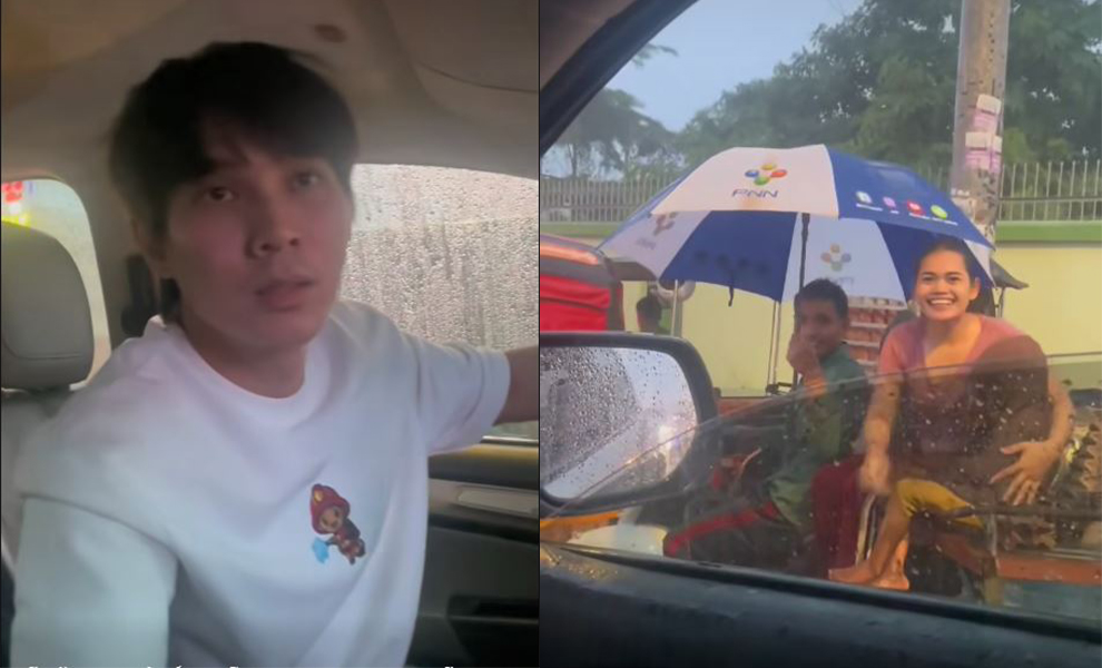 កម្លោះសង្ហា ខាត់ វ៉ៃហាំង បានកំពុងធ្វើឱ្យមហាជនរំភើបចិត្តជាខ្លាំងក្រោយឃើញទឹកចិត្តដ៏ល្អរបស់លោក ដកឆត្រហុចឱ្យម្ដាយកូនពីរនាក់ដែលអង្គុយលើម៉ូតូរ៉ឺម៉កទាំងខ្លួនរងាញ័រញាក់ក្រោមដំណក់ទឹកភ្លៀងទាំងពុំមានអ្វីដណ្ដប់។
