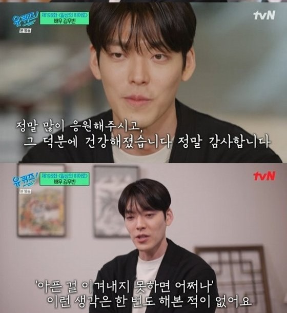 ថ្មីៗ នេះ លោកបានចូលរួមជាភ្ញៀវកិត្ដិយសក្នុងកម្មវិធី “Quiz On The Block” និងបាននិយាយពីរៀបរាប់ពីអារម្មណ៍របស់លោកបន្ទាប់ពីតស៊ូប្រឆាំងជាមួយជំងឺមហារីកអស់រយៈពេលជាង ២ ឆ្នាំ។ Kim WooBin បានលើកឡើងថា លោកពិតជាមានអារម្មណ៍ភ័យខ្លាចកាលពីដំបូងៗ ចុះប្រសិនបើលោកមិនជាសះស្បើយ និងមិនអាចវិលត្រឡប់ចូលសិល្បៈវិញបាន តើរឿងនឹងទៅជាយ៉ាងណា?