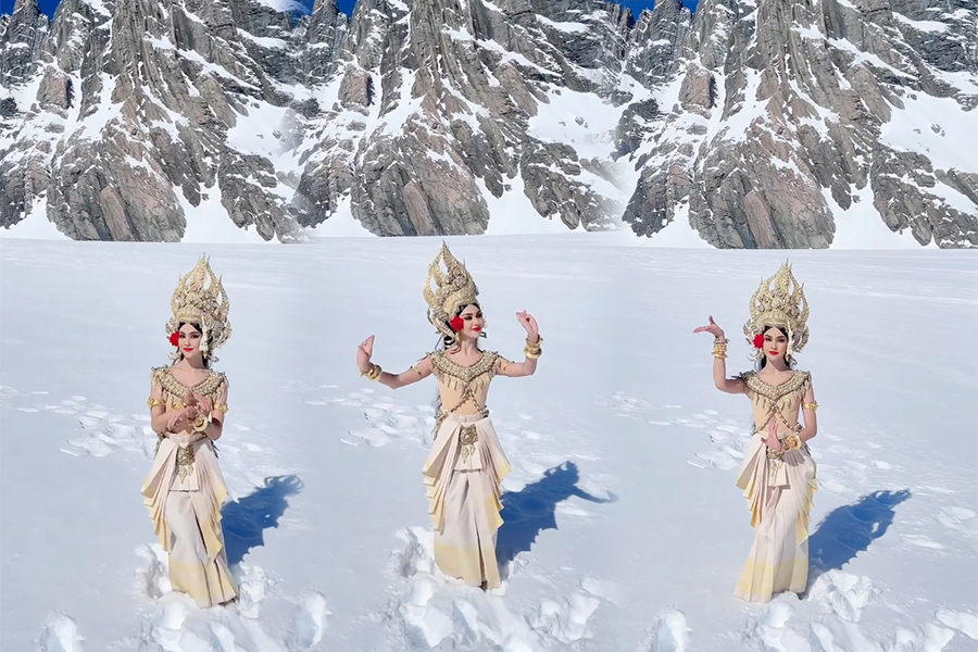 មុននេះបន្តិច មានវីដេអូមួយត្រូវបានគេចែកចាយពាសពេញបណ្តាញសង្គមហ្វេសប៊ុក នោះគឺជាឃ្លីបវីដេអូដែល នាថការីរបាំបុរាណ សុគា គីមលាង ហៅ Kon Ant កំពុងពត់ពែនខ្លួនរាំរបាំបុរាណខ្មែរ ក្នុងឈុតអប្សរាអង្គរកម្ពុជា នៅលើភ្នំទឹកកកប្រទេសនូវែលហ្សេឡង់។