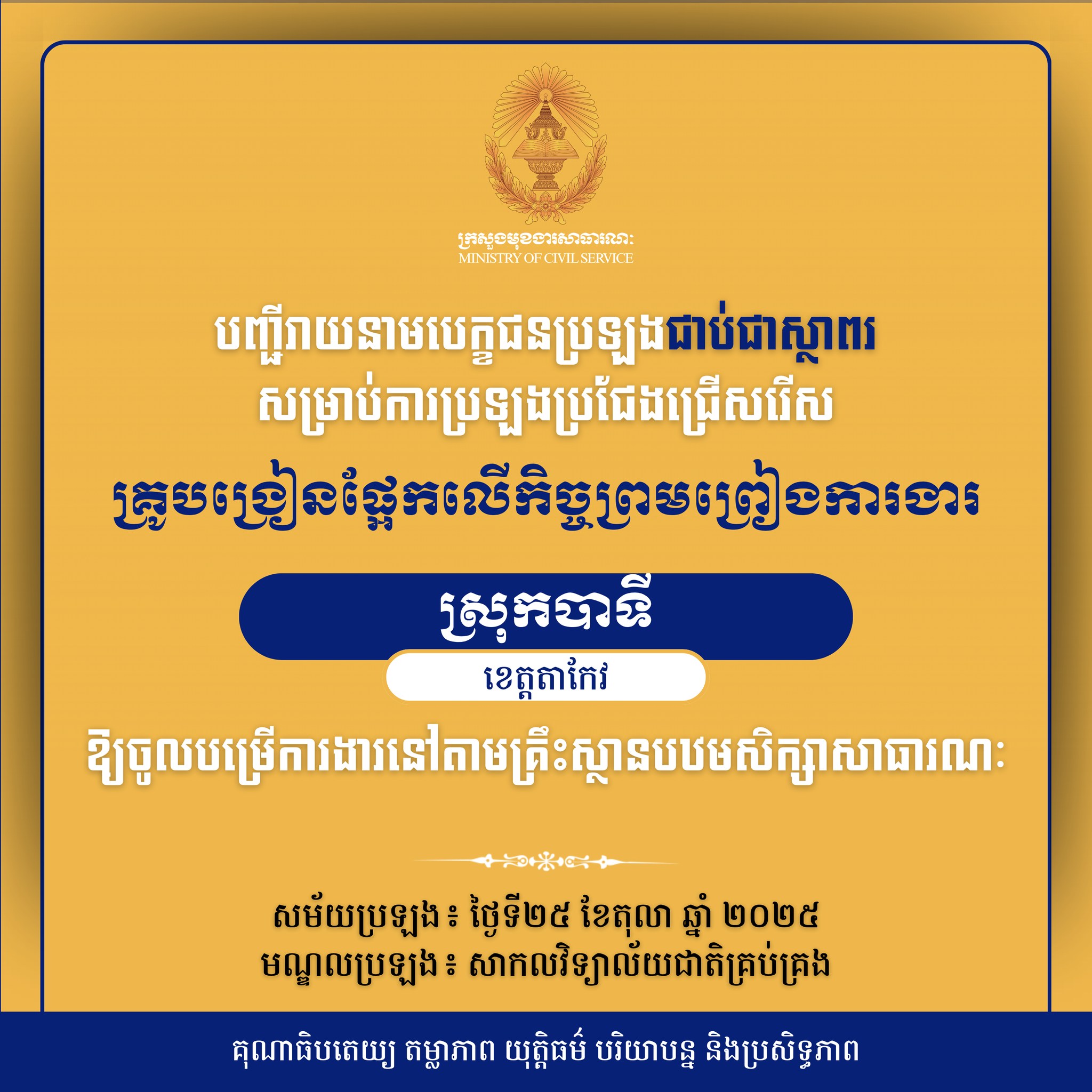 ធីតាឯកសង្ក្រាន្តឆ្នាំ ២០២១ សាន្ត កុសុមៈ បានសម្រេចគោលបំណងក្លាយជាគ្រូបង្រៀននៅគ្រឹះស្ថានបឋមសិក្សាសាធារណៈមួយក្នុងឃុំលំពង់ ស្រុកបាទី ខេត្ត តាកែវ។ នេះបើតាមការជូនដំណឹងលើផេកផ្លូវការរបស់ក្រសួងមុខងារសាធារណៈកាលពីថ្ងៃសុក្រ ទី ២៨ ខែ តុលា ឆ្នាំ ២០២៥ កន្លងទៅថ្មីៗ។