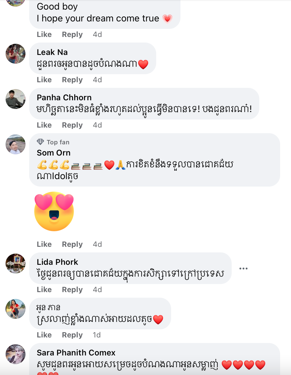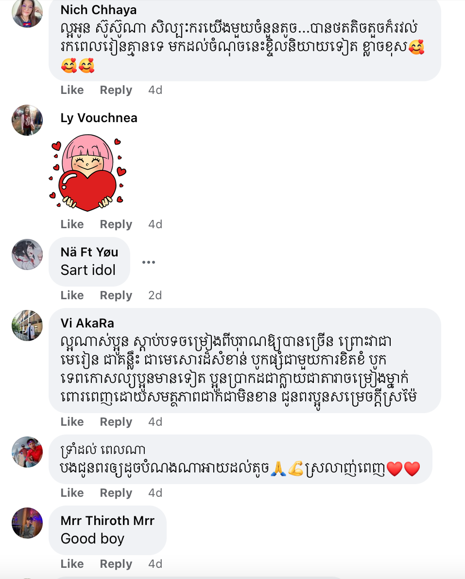 គួររំលឹកដែរថា នេះមិនមែនជាលើកទី១ទេ ដែលកុមារាដែលមានស្រុកកំណើតនៅខេត្តតាកែវរូបនេះ បង្ហាញពីជំហរចំពោះការសិក្សា ថែមទាំងធ្លាប់ប្តេជា្ញចិត្ត និងឆន្ទៈយ៉ាងមោះមុតលើការរៀនសូត្រ បើទោះបីជាអាជីពអ្នកចម្រៀងអាចផ្តល់ប្រាក់កម្រៃល្អប្រសើរឱ្យខ្លួន និងធ្វើឱ្យជីវភាពមានការប្រែប្រួលក៏ពិតមែន។