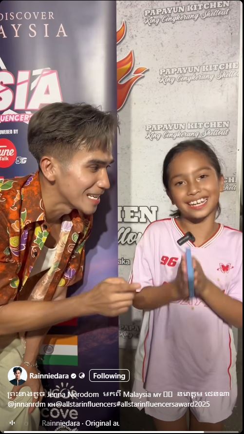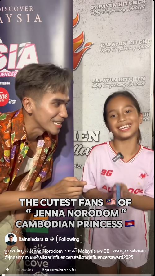 ថ្មីៗនេះអ្នកផលិតមាតិកា Rainniedara បានទៅចូលរួមកម្មវិធីមួយដែលមានឈ្មោះថា all star influencers នៅប្រទេសម៉ាឡេស៊ី។ ក្នុងដំណើរទៅកាន់ប្រទេសម៉ាឡេស៊ីនាលើកនេះលោកបានបង្ហាញវីដេអូខ្លីមួយដែលកំពុងធ្វើឱ្យមហាជនជាច្រើនចាប់អារម្មណ៍ទៅលើក្មេងស្រីអាយុ ១២ ឆ្នាំ ដែលជាជនជាតិម៉ាឡេស៊ីម្នាក់ដោយនាងជាអ្នកគាំទ្រមួយរូបរបស់ព្រះនាងតូច នរោត្តម ជេនណា។