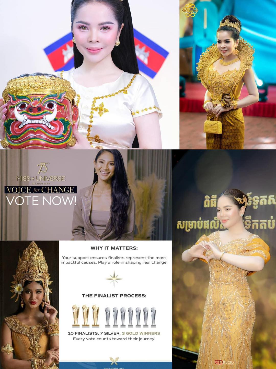 កាលពីម្សិលមិញនេះ មានការរួបរួមគ្នាជាការបោះឆ្នោត Voice for Change ដែល Miss Universe Cambodia 2024 ក៏កំពុងស្ថិតនៅក្នុង Top 10 នៃចំនួនប្រទេសទាំងអស់ផងដែរ។ ក្នុងនោះមានទាំងអ្នកជំនួញ និងសិល្បករជាច្រើន បានខ្នះខ្នែង ចូលរួមជាថវិកា ដើម្បីជំរុញការបោះឆ្នោតនោះ។