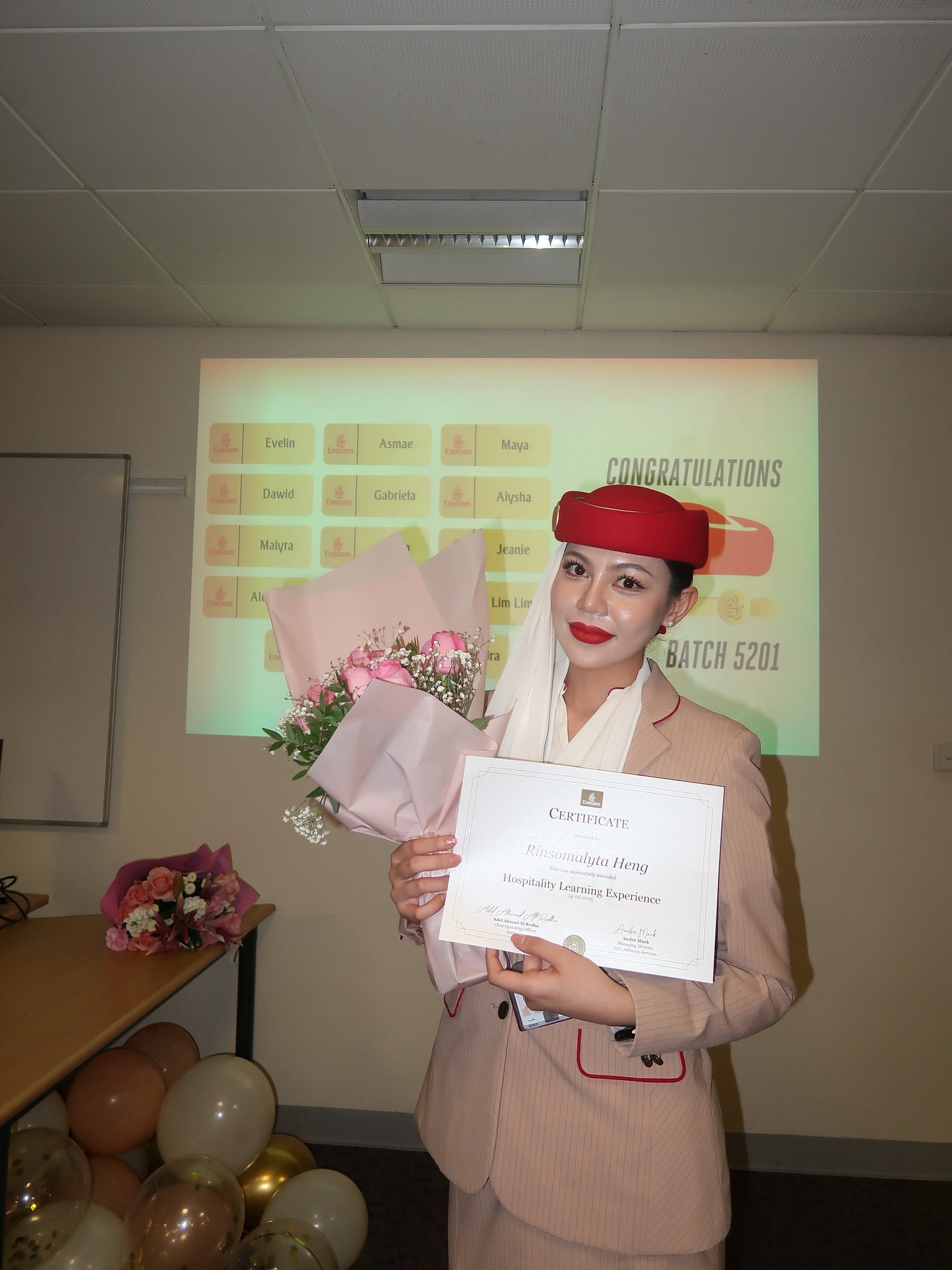 ១. ហេងរិន សុម៉ាលីតា៖ ធីតាឯកសង្ក្រាន្តរដូវកាលទី៣ ឆ្នាំ ២០២២ កំពុងបំពេញការងារឲ្យក្រុមហ៊ុន Emirates។