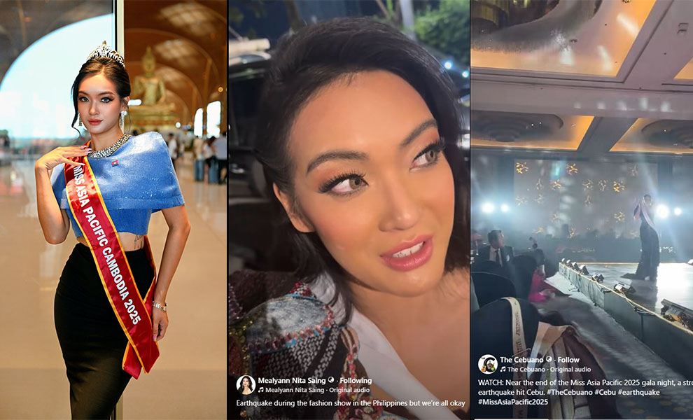 នាវេលាម៉ោងប្រមាណជា ១០ យប់ ថ្ងៃទី ៣០ ខែ កញ្ញា ឆ្នាំ ២០២៥ គ្រោះរញ្ជួយដីក្នុងកម្រិតជិត ៦.៧ វ៉ិចទ័របានកើតឡើងនៅចំកណ្ដាលទីក្រុង Cebu ប្រទេសហ្វីលីពីន។ ដូចដែលមហាជនបានជ្រាបអ្នកនាង Mealyann Nita Saing/សាំង មាលាយ៉ាន នីតា Miss Asia Pacific Cambodia 2025 គឺជាបេក្ខភាពតំណាងកម្ពុជាចូលរួមប្រកួតនៅទីនោះ។ គ្រោះរញ្ជួយដីកាលពីយប់មិញ កើតឡើងចំពេលប្រកួតវគ្គ Fashion designer បង្កឱ្យមានការភ្ញាក់ផ្អើលដល់បេក្ខភាពបវរកញ្ញាក៏ដូចជាភ្ញៀវដែលចូលរួមតែពុំមានការរងរបួសនោះទេ។ ក្រោយកើតហេតុការណ៍នេះឡើងបណ្ដាអ្នកចូលរួម និងបវរកញ្ញាទាំងអស់ត្រូវបានជម្លៀសចេញមកខាងក្រៅអគារដើម្បីរកទីសុវត្ថិភាព។