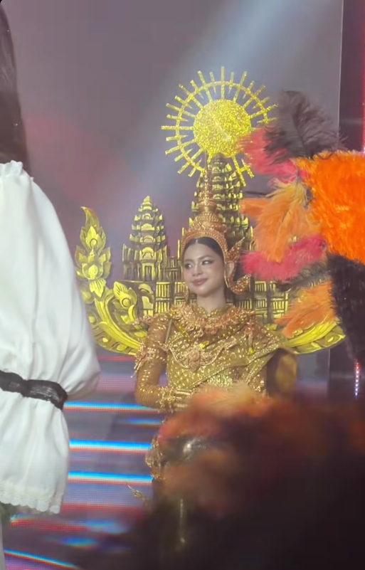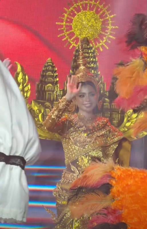 ពេល ដេត ស្រីនាឌ ដើរបង្ហាញឈុតតំណាងជាតិ Angkor Equinox ទឹកមុខដ៏អង់អាចក្លាហាន និងរឹងមាំដូចប្រាសាទដូនតាខ្មែរ ដែលស្ពាយនៅពីលើស្មានាង។ អ្វីដែលនាងធ្វើបានរឹតតែល្អ ក្នុងពេលបង្ហាញឈុតតំណាងជាតិ នាងចង្អុលដោយមិនញញើត ចំពោះខ្មាំងសត្រូវ៕