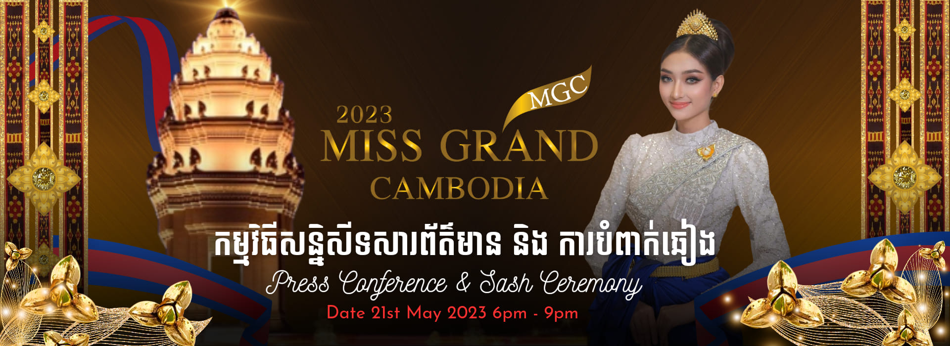សន្និសីទសារព័ត៌មានបង្ហាញមុខបេក្ខភាព Miss Grand Cambodia 2023 ទាំង២៥រូប និងការបំពាក់ឈៀង ជូនបេក្ខភាពទាំងអស់ ត្រូវប្រារព្ធឡើងយ៉ាងអធិកអធមកាលពីថ្ងៃទី ២១ ខែ ឧសភា នៅសណ្ឋាគារ SUN & MOON, Riverside Hotel។