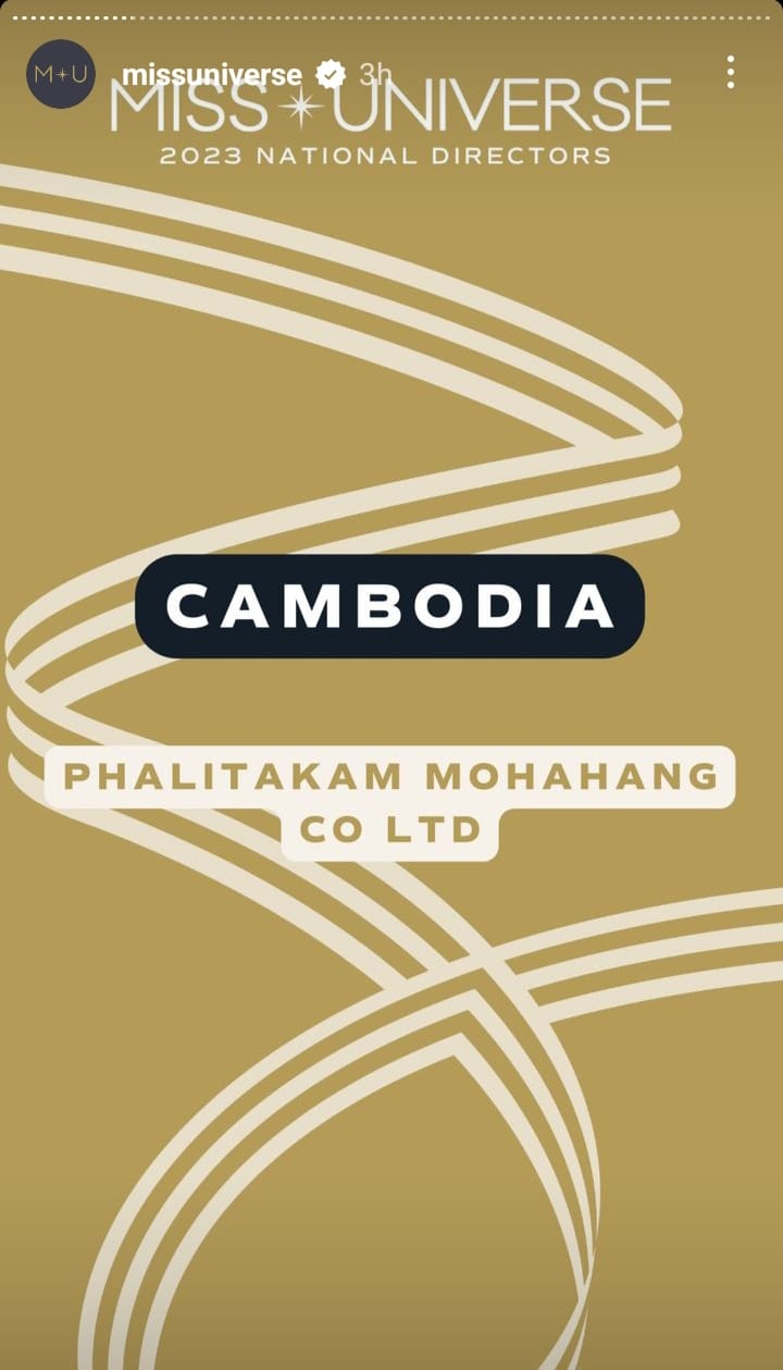 ចាត់ទុកថា ជាការស្រាយចម្ងល់របស់ហ្វេនៗអ្នកស្នេហាវិស័យប្រកួតប្រជែងសម្រស់នៅកម្ពុជា ដោយថ្មីៗនេះ ស្ថាប័ន Miss Universe បានបង្ហោះ story មួយនៅលើផេកផ្លូវការរបស់ខ្លួនដែលបញ្ជាក់ថា ក្រុមហ៊ុន មហាហង្ស គ្រប់គ្រងដោយ លោក អ៊ិន សុភិន គឺជាម្ចាស់អាជ្ញាប័ណ្ណថ្មី Miss Universe Cambodia 2023 បន្ទាប់ពីក្រុមហ៊ុន Cambodia International Models (CIM) ហើយម្ចាស់អាជ្ញាប័ណ្ណថ្មី ក៏កំពុងត្រៀមរៀបចំការប្រកួតបវរកញ្ញាចក្កវាឡកម្ពុជាឆ្នាំ ២០២៣ នាពេលឆាប់នេះ។