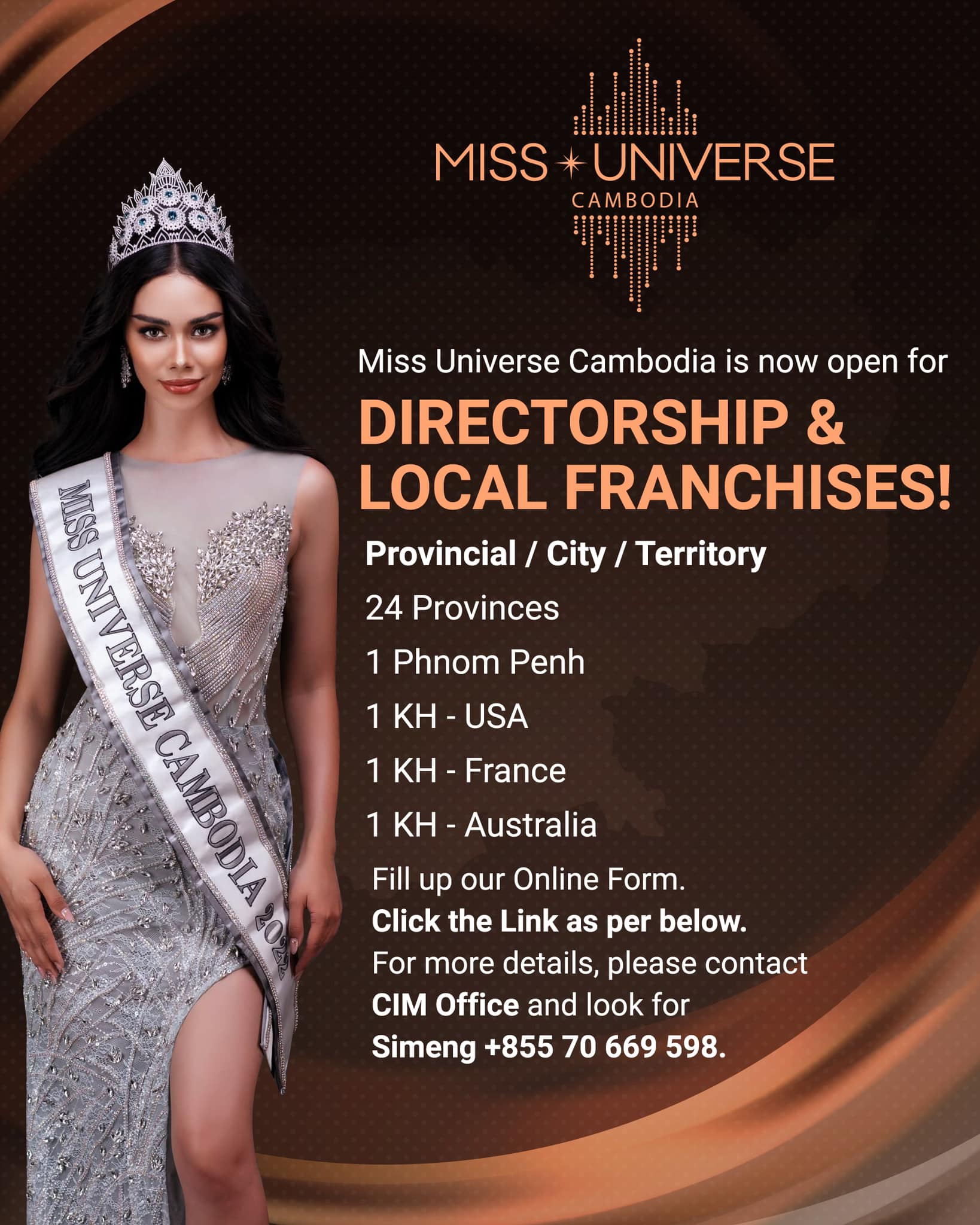 បវរកញ្ញាចក្រវាលកម្ពុជា ប្រកាសបើកការជ្រើសរើស DIRECTORSHIP & LOCAL FRANCHISES តាមបណ្តាខេត្ត និងរាជធានី ដូចខាងក្រោម៖