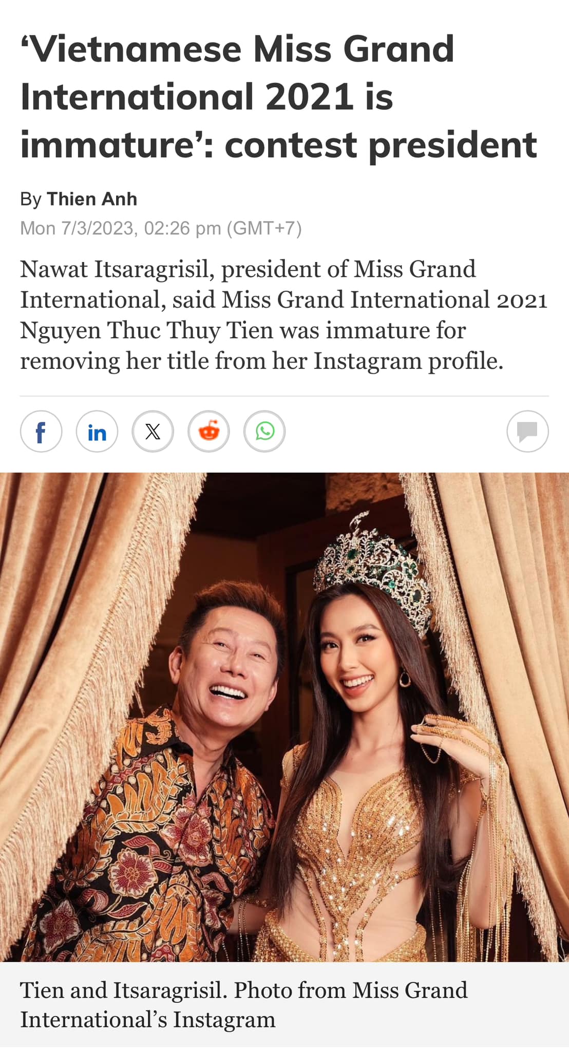 សារព័ត៌មានវៀតណាម៖ របៀបដឹកនាំរបស់លោក Nawat ធ្វើឱ្យ Miss Grand ក្លាយជាវេទិកាផ្សាយជម្លោះ ជាជាងវេទិកាផ្សាយសន្តិភាព
