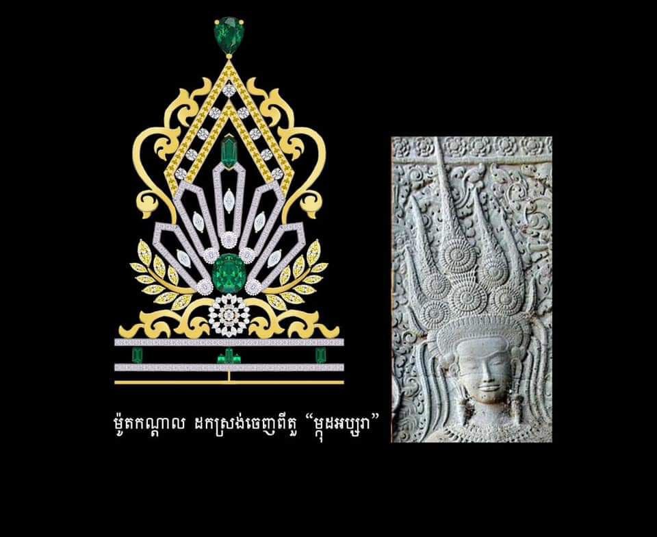 .រួមជាមួយនិងក្បាច់រចនាដែលដកស្រង់ចេញពីទម្រង់កមុដ តួរអង្គ របាំអប្សរា ផងដែរ ។