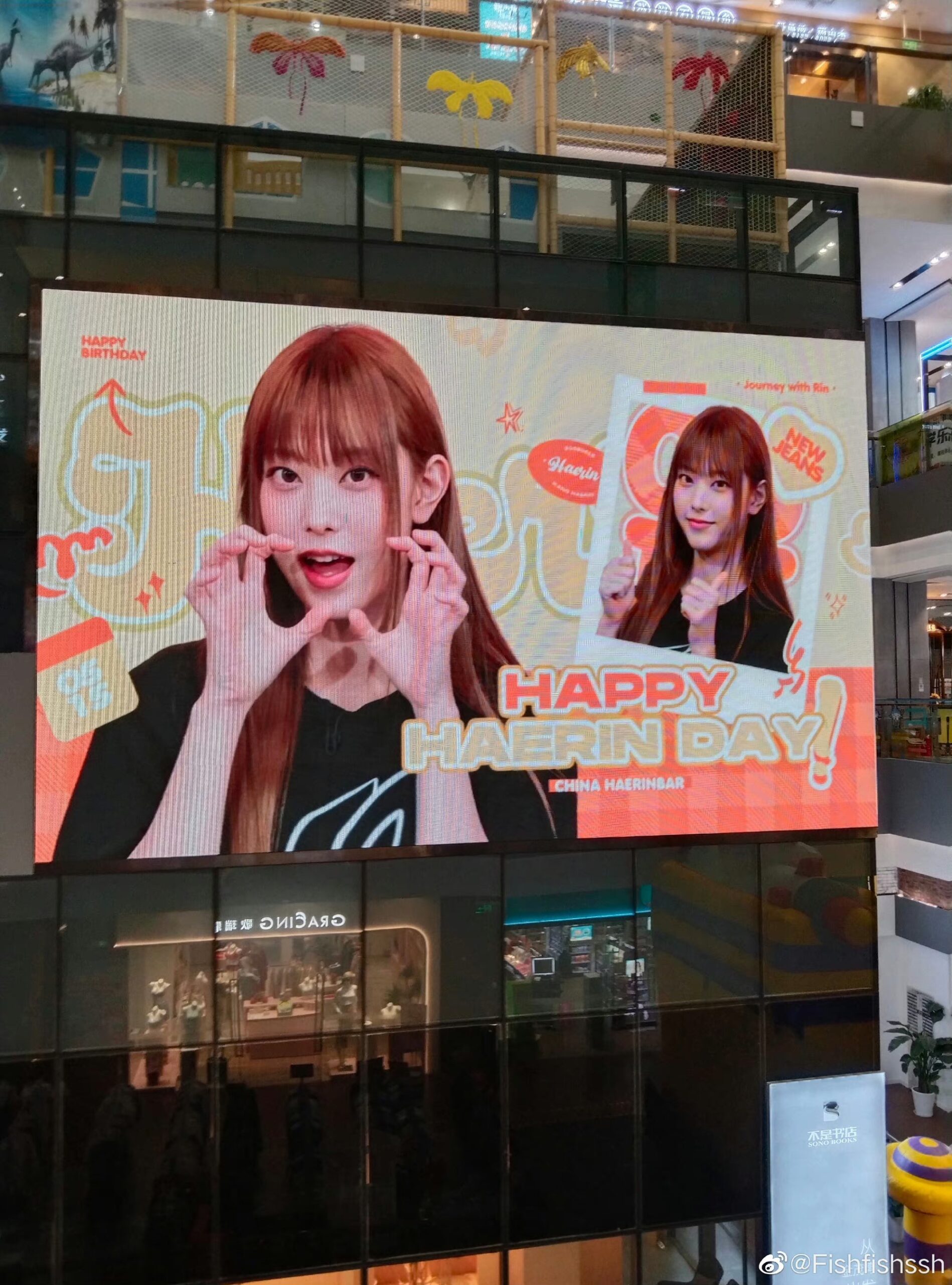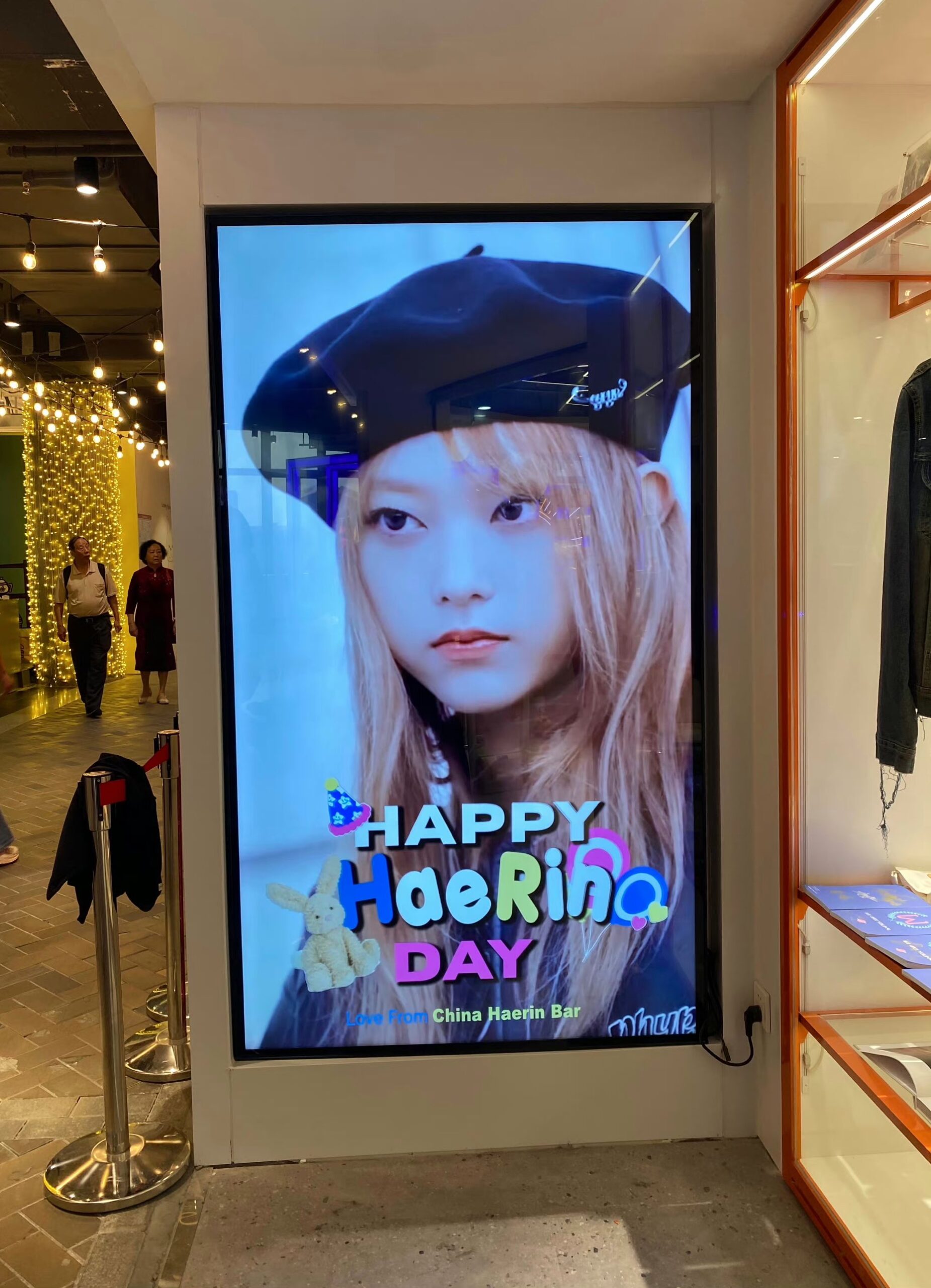 អ្វីដែលធ្វើឱ្យមហាជនហាក់មានការភ្ញាក់ផ្អើលខ្លាំងនោះគឺក្រុមអ្នកគាំទ្រក្នុងប្រទេសចិនរបស់ Haerin សមាជិកក្រុម Newjeans គឺ Haerin China Bar បានរៀបចំគម្រោងពិសេស សម្រាប់អបអរដល់ពិធី​ខួប​កំណើតរបស់នាងចូលវ័យ ១៧ ឆ្នាំ កាលពីថ្ងៃទី ១៥ ខែ ឧសភា ឆ្នាំ ២០២៣។ ដោយគម្រោងនោះពួកគេបានជ្រើសដាក់វីដេអូអបអរថ្ងៃកំណើតលើផ្ទាំង LED ធំៗ នៅតាមទីក្រុងជាច្រើនមិនតិចជាង ៣០-៤០ កន្លែងក្នុងប្រទេសដូចជា កូរ៉េខាងត្បូង ចិន ជប៉ុន និងថៃ ជាដើម។ ពួកគេក៏បានចូលរួមបរិច្ចាគចំណីសត្វឆ្មាជាច្រើនទៅដល់កន្លែងចិញ្ចឹមសត្វអនាថាផងដែរ។