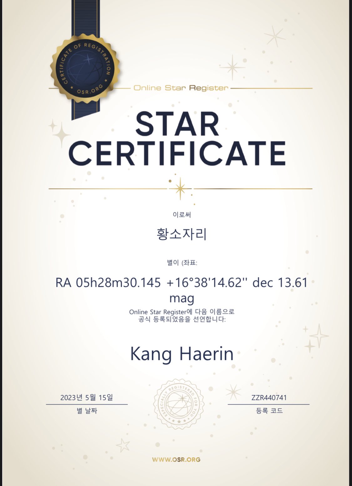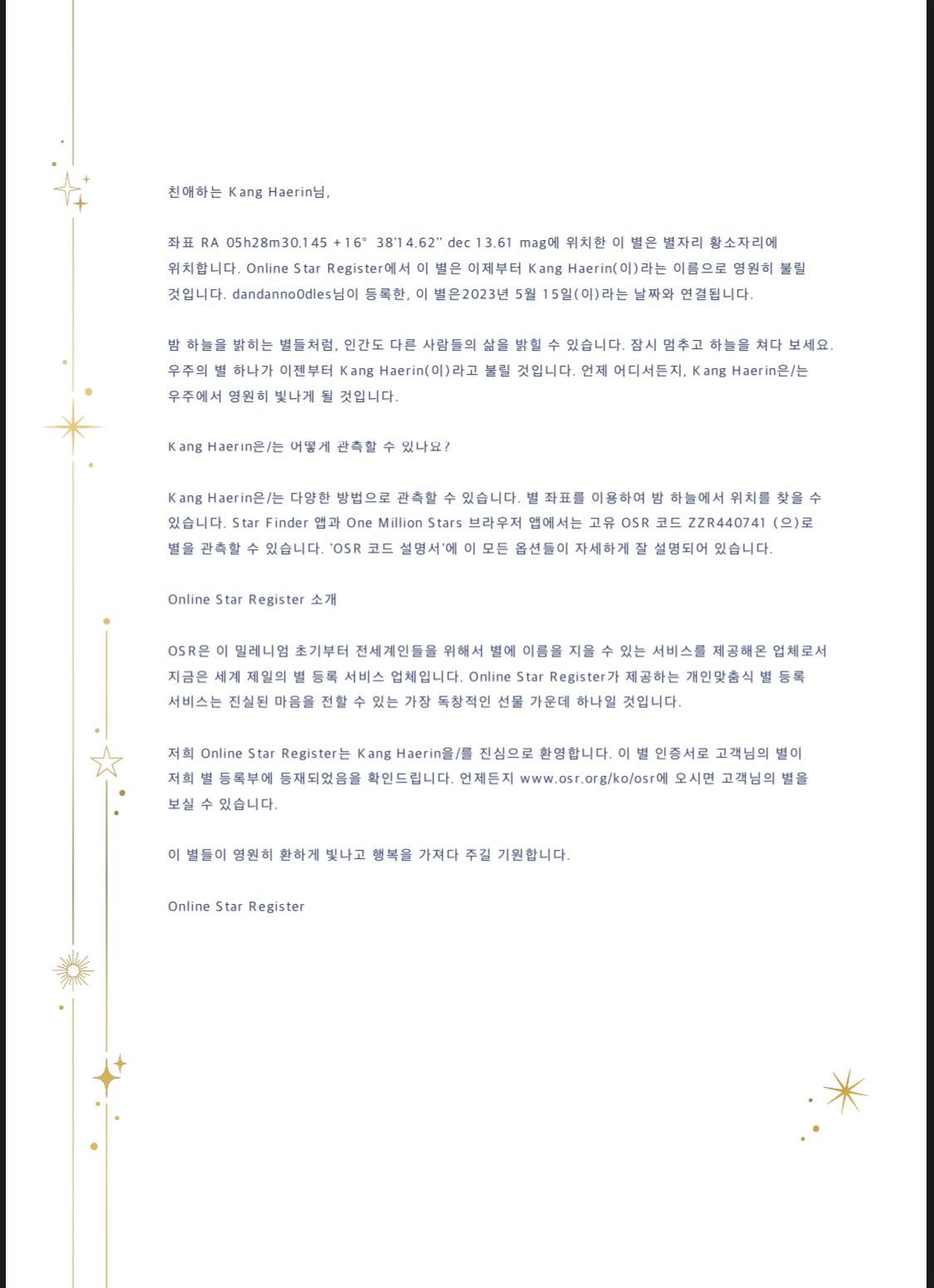 ក្រៅពីនេះពួកគេបរិច្ចាគសំឡីអនាម័យជាច្រើនសរុបច្រើនជាង ៥ ពាន់ដុំ ដែលសុទ្ធសឹងជាផលិតផលល្អៗ ដល់ក្មេងស្រីជំទង់ ដើម្បីចូលរួមការពារសុខភាពរបស់ពួកគេ។ ក្រៅពីនេះ ក្រុមអ្នកគាំទ្ររបស់ Haerin មួយចំនួនទៀតក៏បានទិញផ្កាយ ដាក់ឈ្មោះរបស់ Haerin ផងដែរ សម្រាប់ការទិញផ្កាយនេះពួកគេបានដាក់ឈ្មោះថា “I am a star”។