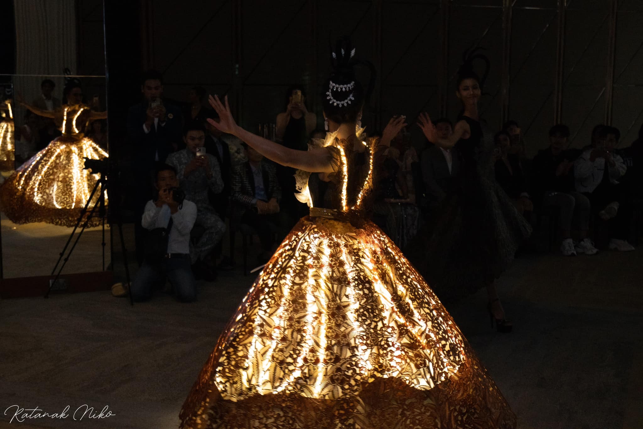 មិនទាន់អស់នៅឡើយទេ លើកនេះអ្នកច្នៃម៉ូដ អូលីវ៉ា ធ្វើឱ្យអ្នកចូលរួមចំហមាត់គ្រប់គ្នា ពេលឃើញឈុតទេពអប្សររំដួលបរមវិស្ណុលោក ច្នៃឡើងពីរស្បែកគោ (ដកស្រង់ពីល្ខោនស្រមោលស្បែកធំ) ដើរបង្ហាញដោយតារាចម្រៀង នីគីនីគី ដោយសារឈុតនេះប្រណីតខ្លាំង ហើយពិតជាប្លែកមិនធ្លាប់មានពីមុនមកនោះឡើយ ដែលជ្រើសរើសយកស្បែកគោមកច្នៃ និងរំលេចដោយភ្លើងភ្លឺចែងចាំង។