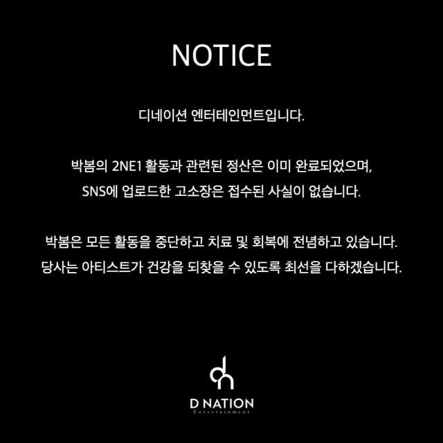 សេចក្តីថ្លែងការណ៍ទាំងស្រុងរបស់ទីភ្នាក់ងារ D Nation របស់ Park Bom ដែលចេញផ្សាយនៅព្រឹកថ្ងៃទី២៣ ខែតុលានេះមានខ្លឹមសារទាំងស្រុងដូចខាងក្រោម៖