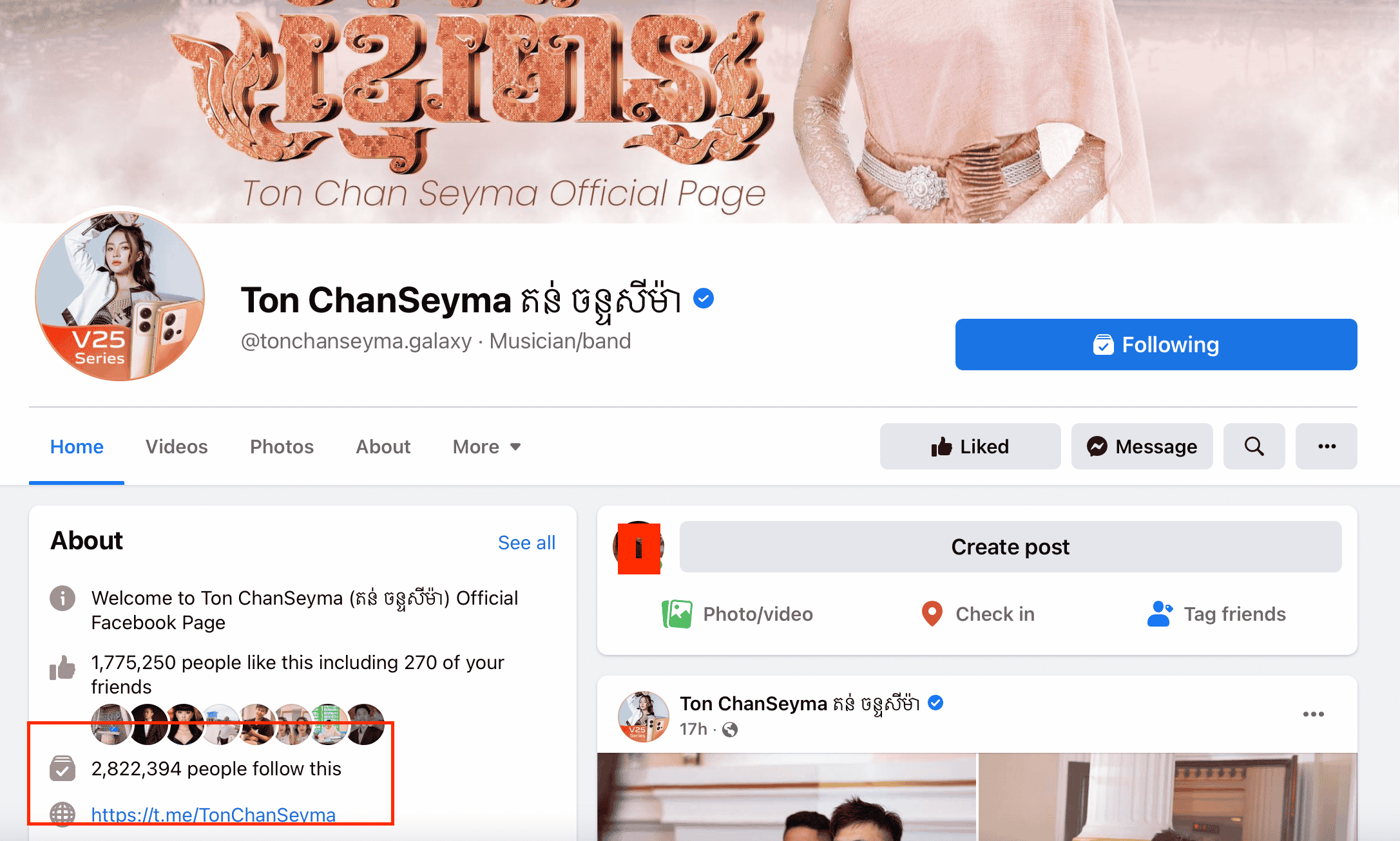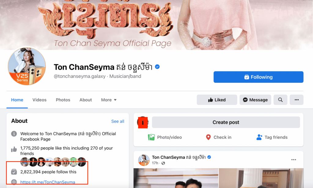 សិល្បករខ្មែរភាគច្រើន សុទ្ធតែមានទំព័រហ្វេសប៊ុកផ្លូវការរៀងៗខ្លួន ទុកសម្រាប់ចែករំលែកបច្ចុប្បន្នភាពការងារ និងជីវិតឯកជនដល់ហ្វេនៗ ក្នុងនោះ ចំនួន Like និង follower ក៏ក្លាយជាផ្នែកមួយនៃការសំខាន់សម្រាប់ការងារផងដែរ។