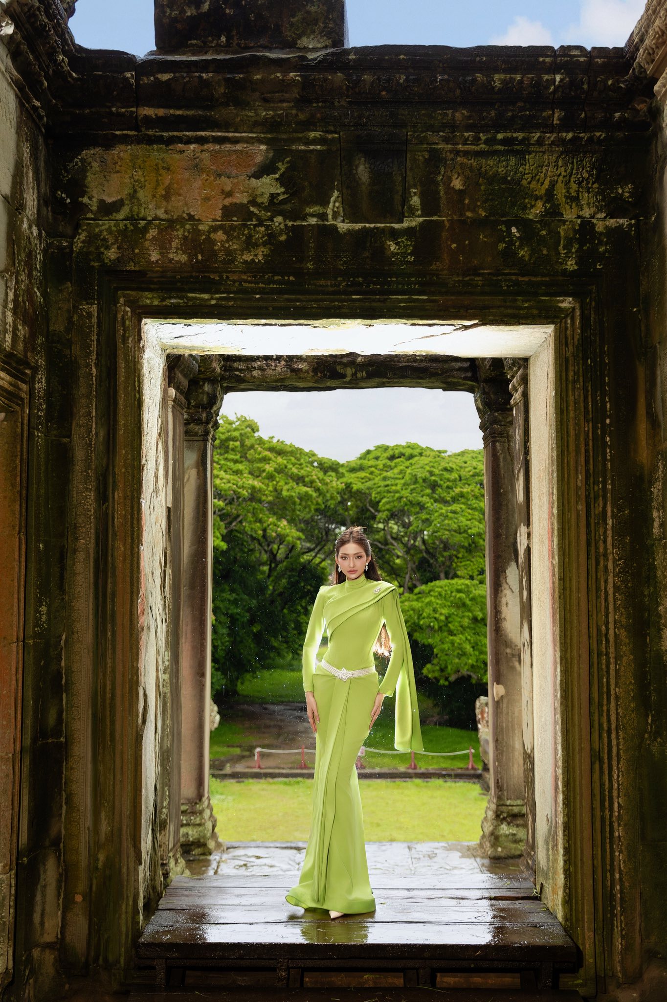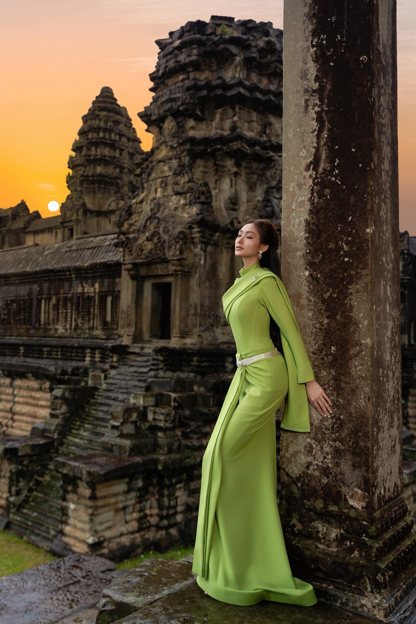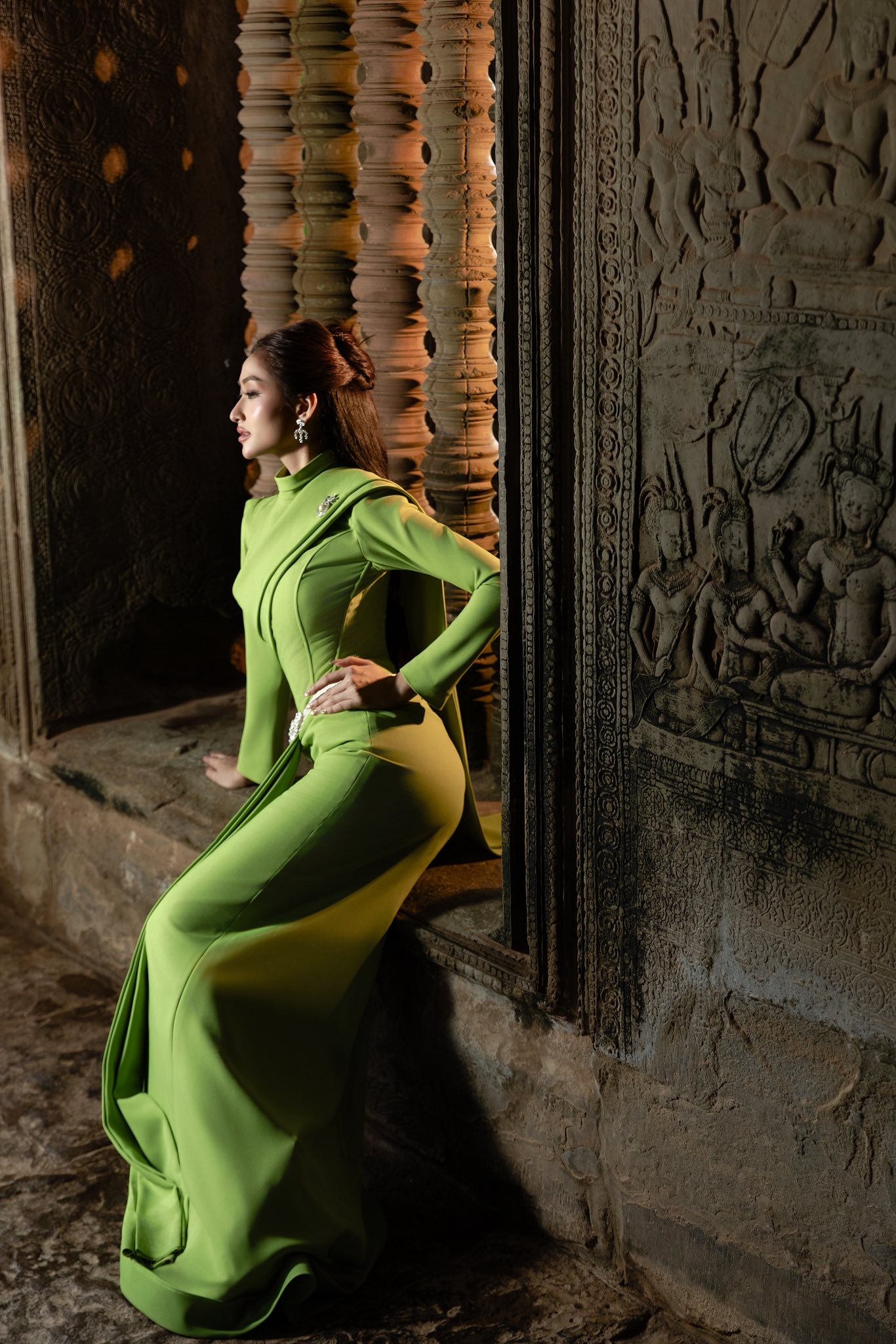 បេក្ខភាព Miss Universe Cambodia 2025 កញ្ញា ពេជ្រ វត្តីសារ៉ាវឌ្ឍី ទើបបង្ហាញរូបភាពថ្មីៗនៅលើទឹកដីអង្គរ។ ស្ថិតក្នុងឈុតសហសម័យដែលច្នៃពីកំណាត់ធម្មតា តែបែបប្រពៃណី ឃើញថា MUC 19 ស្រស់ស្អាតខ្លាំង ហើយក៏ប្លែកផងដែរ ព្រោះនាងបានជ្រើសរើសពណ៌ត្រួយចេកខ្ចី។
