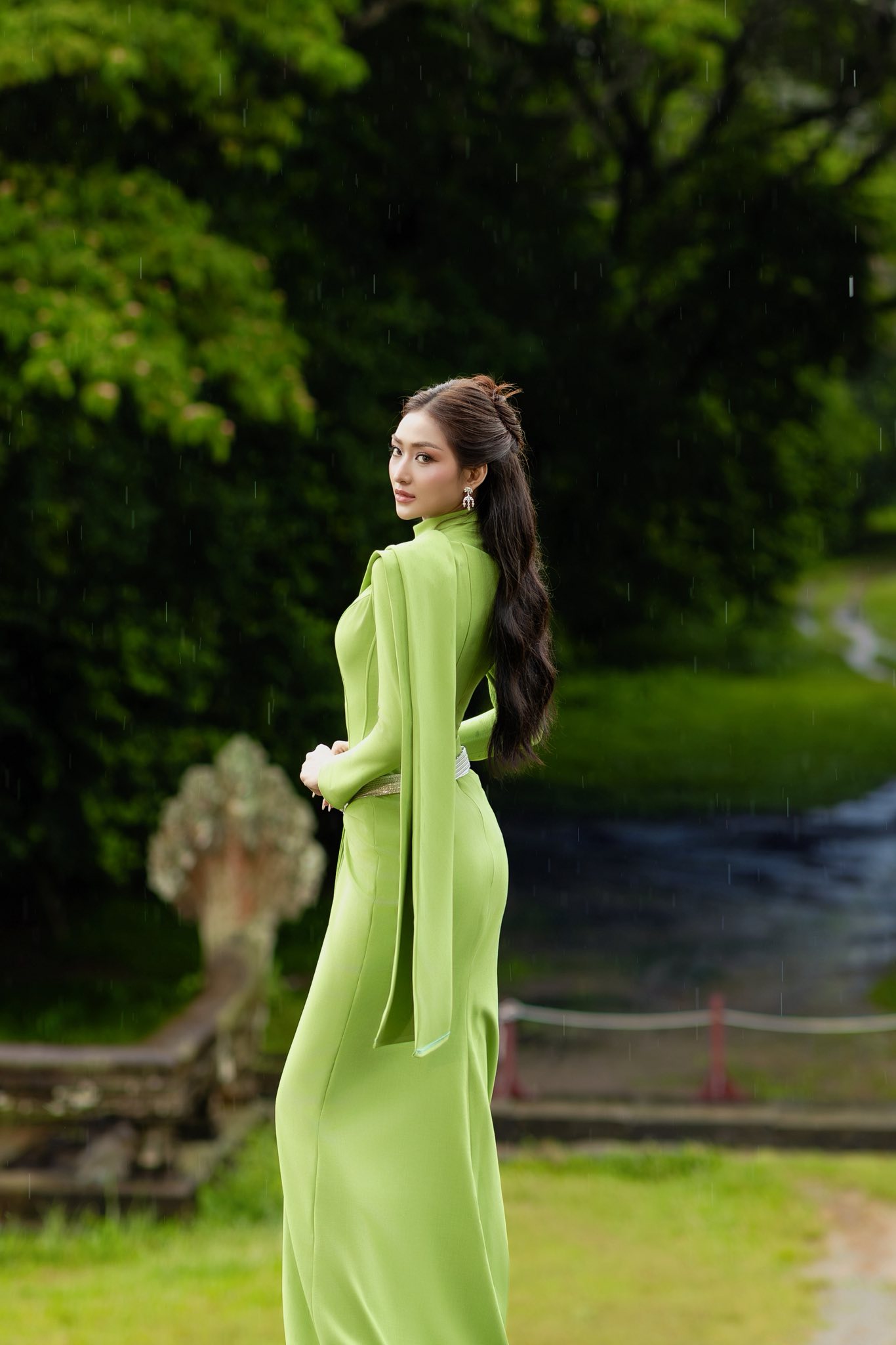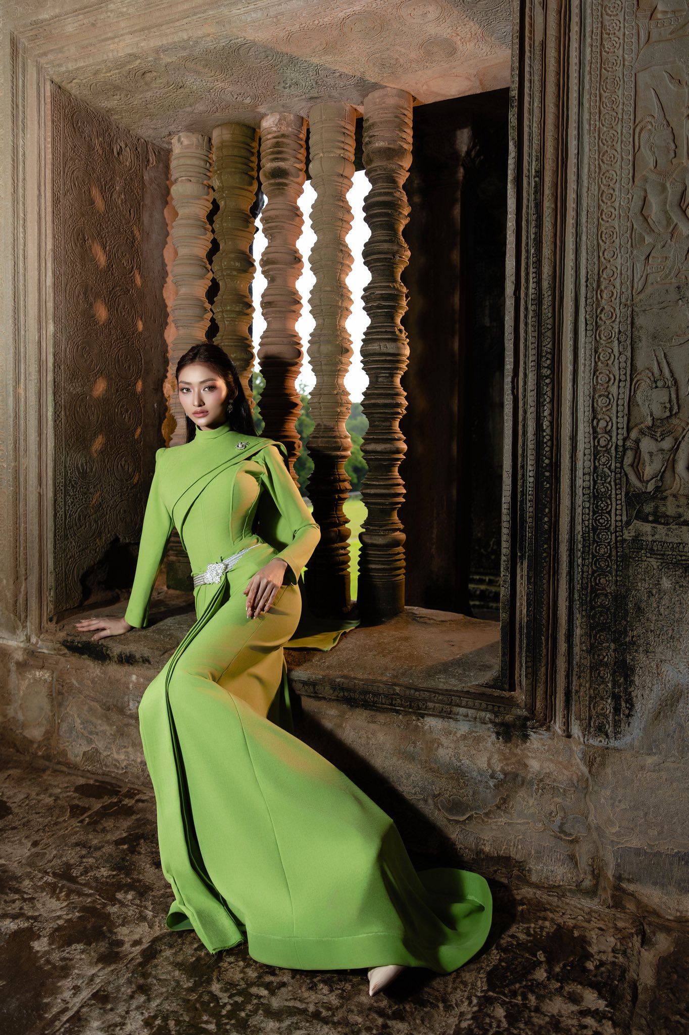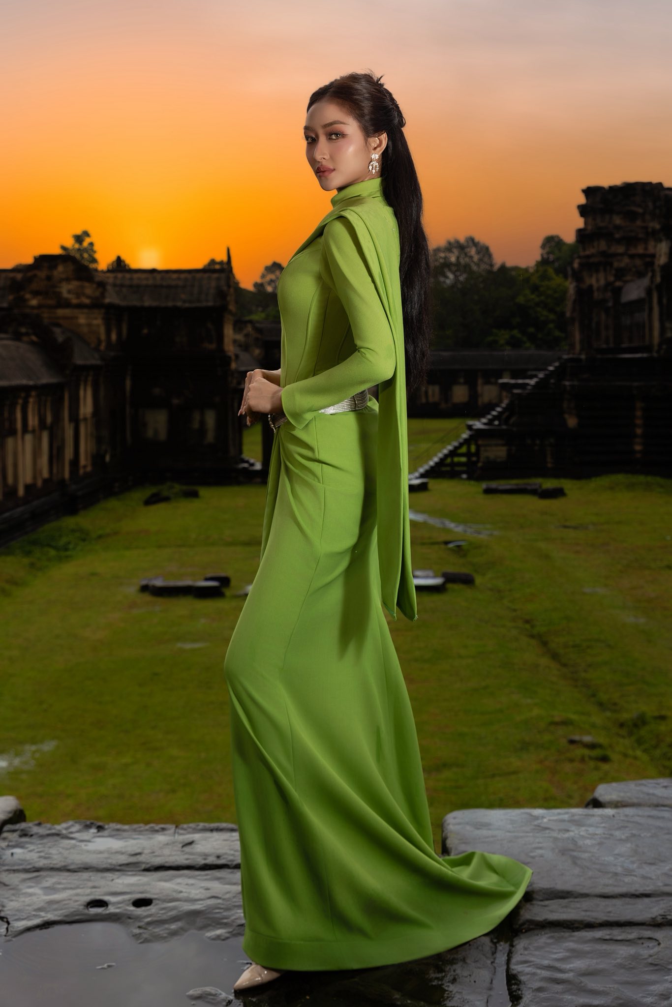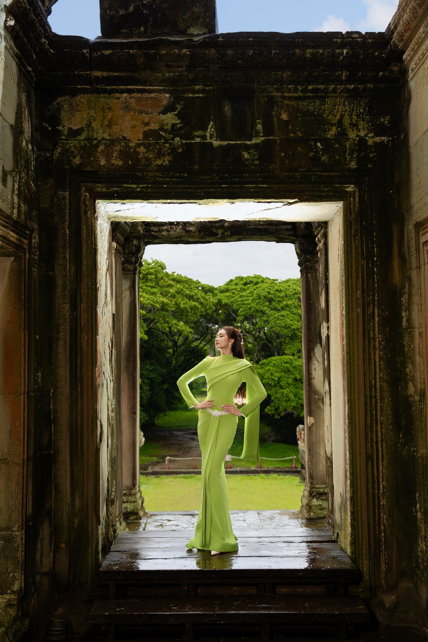 បេក្ខភាព Miss Universe Cambodia 2025 កញ្ញា ពេជ្រ វត្តីសារ៉ាវឌ្ឍី ទើបបង្ហាញរូបភាពថ្មីៗនៅលើទឹកដីអង្គរ។ ស្ថិតក្នុងឈុតសហសម័យដែលច្នៃពីកំណាត់ធម្មតា តែបែបប្រពៃណី ឃើញថា MUC 19 ស្រស់ស្អាតខ្លាំង ហើយក៏ប្លែកផងដែរ ព្រោះនាងបានជ្រើសរើសពណ៌ត្រួយចេកខ្ចី។