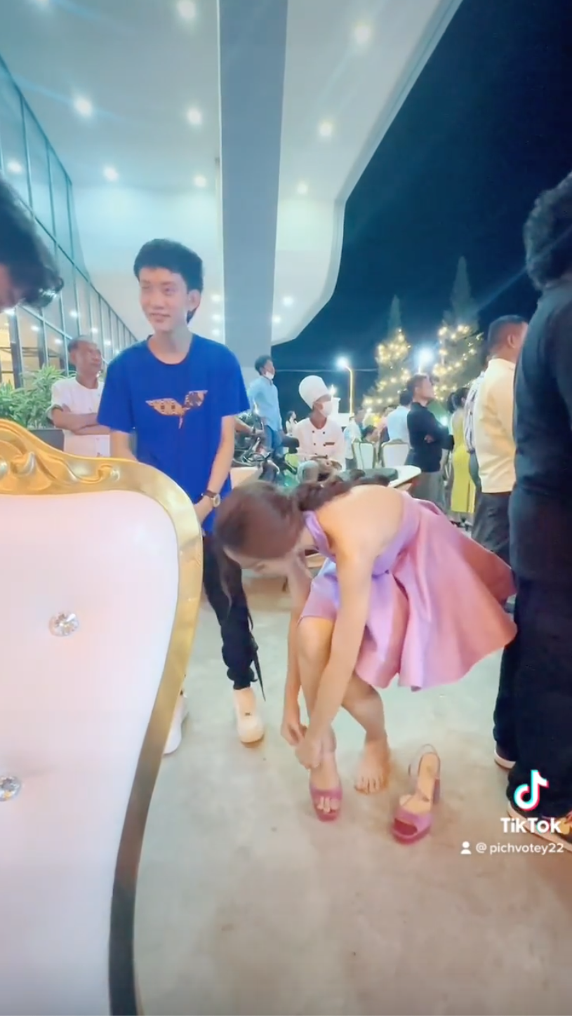 ដោយសារតែ 5th Runner up Miss Grand International 2022 មានកម្ពស់ខ្ពស់ រីឯ កំលោះតូចម្ចាស់ពាន Cambodian Idol រដូវកាលទី៤ មានរូបរាងតូចទាបជាង ដូច្នេះដើម្បីបានថតជាមួយ តិចម៉េង ស្រីស្អាតកូនអ្នកខេត្តព្រះសីហនុ សុខចិត្តដោះស្បែកជើងកែង ហើយបន្ទន់ជង្គង់ឱ្យមើលទៅស័ក្តិសមជាមួយគ្នា។ ហ្វេនៗនាំគ្នាសរសើរព្រាត ពេលឃើញកាយវិការ ពេជ្រ វត្តីសារ៉ាវឌ្ឍី ធ្វើដាក់ លឹម តិចម៉េង បង្ហាញភាពស្និទ្ធស្នាល រួសរាយរាក់ទាក់ និងការគោរពផ្តល់តម្លៃគ្នាទៅវិញទៅមក៕