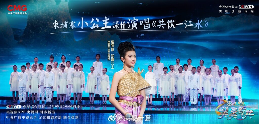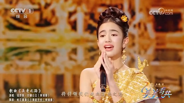 នៅក្នុងកម្មវិធីនោះ ព្រះនាងតូចអង្គនេះបានគ្រងសម្លៀកបំពាក់បែបប្រពៃណីខ្មែរ និងបកស្រាយចម្រៀងខ្មែរបទ «មាគ៌ាអង្គរ» និងបទចិនមួយទៀត «ផឹកទឹកទន្លេប្រភពតែមួយ»។ បទ «មាគ៌ាអង្គរ» ដែលព្រះនាងបានលើកយកទៅច្រៀងក៏បានសហការជាមួយអ្នករបាំនៅសាលារបាំនរោត្តមបុប្ផាទេវី ក្រោមព្រះកិច្ចដឹកនាំរបស់ព្រះអង្គម្ចាស់ ស៊ីសុវត្ថិ តេសូ។ ទាំងចម្រៀង និងក្បាច់រាំរបស់នាដការី ពិតជាធ្វើឲ្យភ្ញៀវនៅក្នុងកម្មវិធី មើលមិនហ៊ានព្រិចភ្នែកឡើយ។
