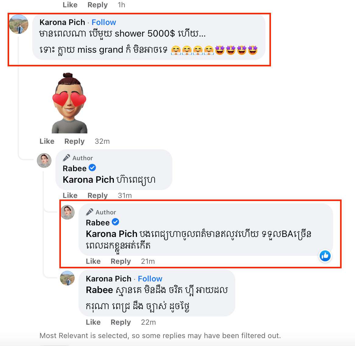 ទោះជាសាម៉ីខ្លួនចេញមុខមកបញ្ជាក់យ៉ាងនេះក្តី ក៏អ្នកគាំទ្រជាច្រើននៅតែជំរុញលើកទឹកចិត្តនាងឱ្យសាកល្បងដាក់ពាក្យប្រកួតកម្មវិធីនេះ។ គួរឱ្យចាប់អារម្មណ៍ ក្នុងចំណោម Comment ទាំងនោះក៏មាន តារាចម្រៀង ករុណា ពេជ្រ ផងដែរ ដែលលោកបាន Comment ថា «មានពេលណា បើមួយ shower 5000$ ហើយ… ទោះ ក្លាយ miss grand ក៏ មិនអាចទេ» ដែលនេះហាក់បញ្ជាក់ឱ្យដឹងថា រ៉ាប៊ី គ្មានពេលគ្រប់គ្រាន់ហ្វឹកហាត់ ដើម្បីកម្មវិធី Miss Grand ព្រោះនាងមានការងារច្រើន ដកខ្លួនមិនរួច។