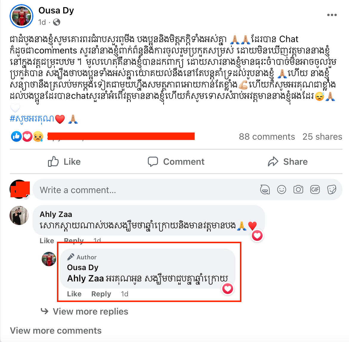 ក្រោយឃើញការបង្ហោះនេះ អ្នកគាំទ្រជាច្រើនរបស់នាង បានបង្ហាញការសោកស្តាយ លាយឡំភាពរីករាយ ព្រោះ ឌី ឧស្សាហ៏ បានបញ្ជាក់ក្នុង Comment ថា «សង្ឃឹមថាជួបគ្នាឆ្នាំក្រោយ» ហាក់បញ្ជាក់ឱ្យដឹងថា នាងអាចនឹងត្រឡប់មកវិញនៅឆ្នាំក្រោយ៕