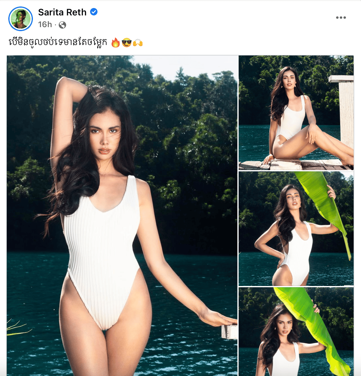 ទន្ទឹមការប្រកួតចាប់ផ្តើម ទំព័រហ្វេសប៊ុកផ្លូវការ Miss Universe Cambodia បានបង្ហោះរូប ម៉ានីតា ស្លៀកឈុតប៊ិគីនី ៤ សន្លឹក ដែលក្នុងរូបថតនោះ​ បវរកញ្ញាកូនកាត់ខ្មែរ-បារាំងរូបនេះ ពិតជាស្រស់ស្អាតប្លែកខ្លាំងណាស់ រហូតបវរកញ្ញា-បុរសឯកកម្ពុជា និងអ្នកគាំទ្រលាន់មាត់សរសើរនាងគ្រប់ៗគ្នា។