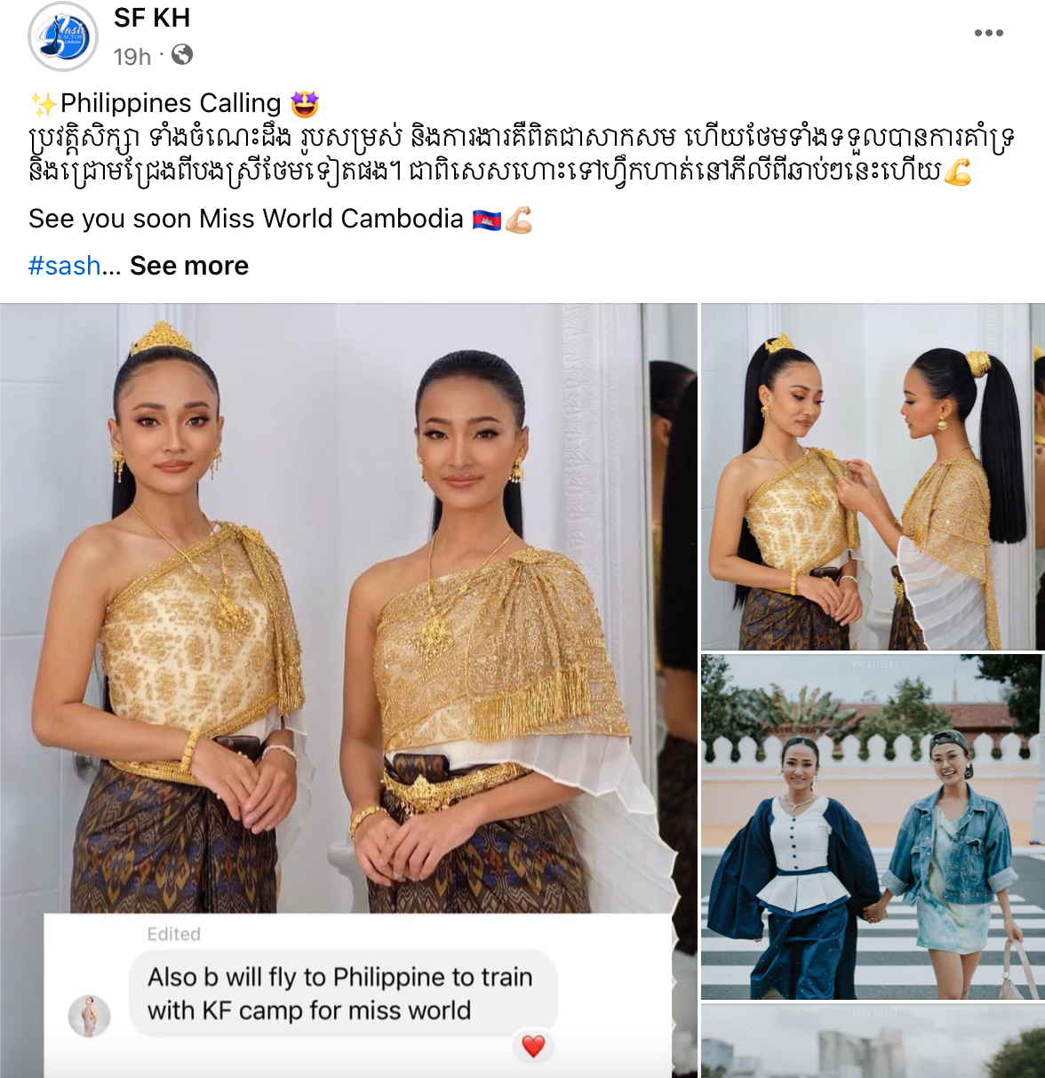 SF KH បានឱ្យដឹងទៀតថា ស្រីនាថ នឹងហោះទៅហ្វឹកហាត់ជាមួយ KF camp នៅប្រទេសភីលីពីននាឆាប់ៗនេះ ដើម្បីពង្រឹងសមត្ថភាពសម្រាប់ដំណើរឆ្ពោះទៅរកការប្រកួត Miss World Cambodia។