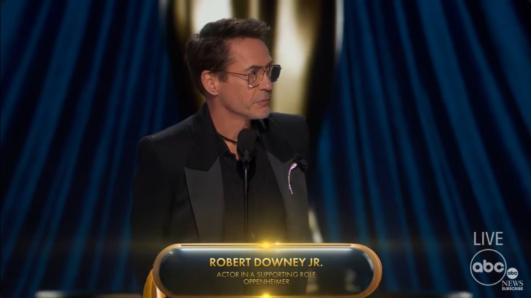 គួរបញ្ជាក់ថា តារាសម្ដែងលោក Robert Downey Jr ធ្លាប់បានឈរឈ្មោះជាបេក្ខភាពដណ្ដើមយកពានរង្វាន់ Oscar សម្រាប់តារាសម្ដែងប្រុសឆ្នើម (Best Actor)ក្នុងរឿង “Chaplin” ក្នុងឆ្នាំ ១៩៩៣ និងតារាសម្ដែងប្រុសរង ឆ្នើម (Best Support Actor) សម្រាប់រឿង “Tropic Thunder” ក្នុងឆ្នាំ ២០០៨ ប៉ុន្ដែរូបលោកមិនបានទទួលជ័យជំនះឡើយ។ រហូតដល់ឆ្នាំ ២០២៤ លោកបានសម្រេចក្ដីបំណងឈ្នះពានរង្វាន់ Oscar ជាលើកដំបូងក្នុងរឿង “Oppenheimer” ក្នុងនាមជាតារាសម្ដែងប្រុសរងឆ្នើម (Best Support Actor) ៕
