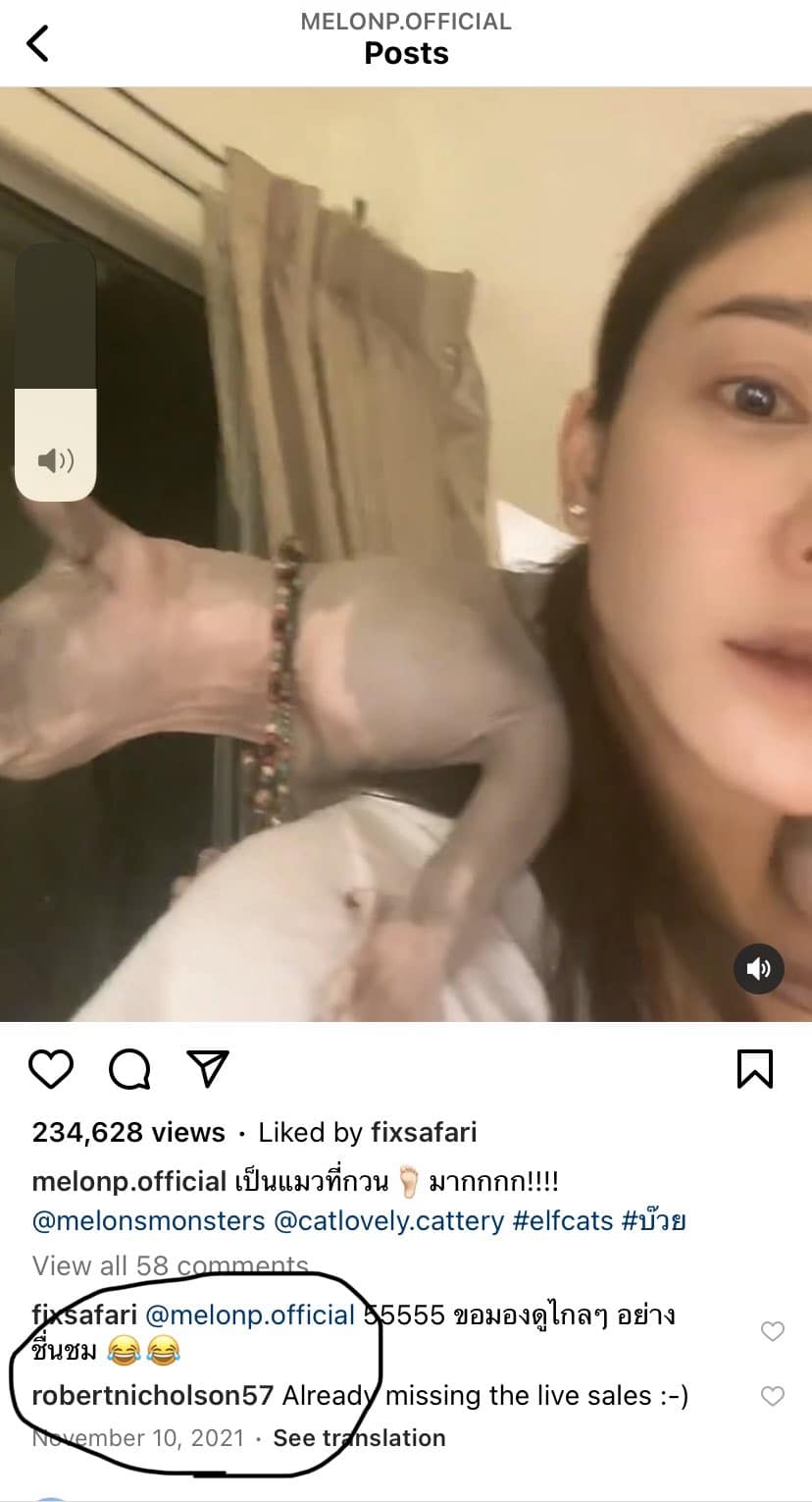 ខណៈភស្ដុតាងមួយផ្សេងទៀតគឺ គេចាប់បានថាពីមុន Robert ឧស្សាហ៍ទៅ Comments នៅក្រោមរូបភាពដែល Tangmo បង្ហោះរបៀបញ៉ែ និងសរសើរ ប៉ុន្ដែរូបភាពទាំងឡាយដែល Robert Comments ទាំងអស់បែរជាត្រូវលុបចោលដោយគ្មានមូលហេតុ ក្រោយថ្ងៃដែលតារាស្រីរូបនេះធ្លាក់ទឹករួច។