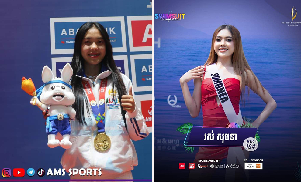 អត្តពលិក រស់ សុមនា ដែលស្ថិតក្នុងក្រុមវាយសីចម្រុះកម្ពុជា ទើបតែឈ្នះមេដាយមាស កីឡាវាយសី វិញ្ញាសាក្រុមចម្រុះ នៅក្នុងព្រឹត្តិការណ៍ស៊ីហ្គេមលើកទី៣២ ជូនជាតិកម្ពុជាកាលពីពេលថ្មីៗនេះ។ មិនត្រឹមតែពូកែកីឡាវាយសីប៉ុណ្ណោះទេ សុមនា ក៏ជាបេក្ខភាពម្នាក់កំពុងប្រកួតប្រជែងក្នុងកម្មវិធី Miss Teen International Cambodia 2023 ដោយលេខសម្គាល់របស់នាងគឺ MTIC 194។