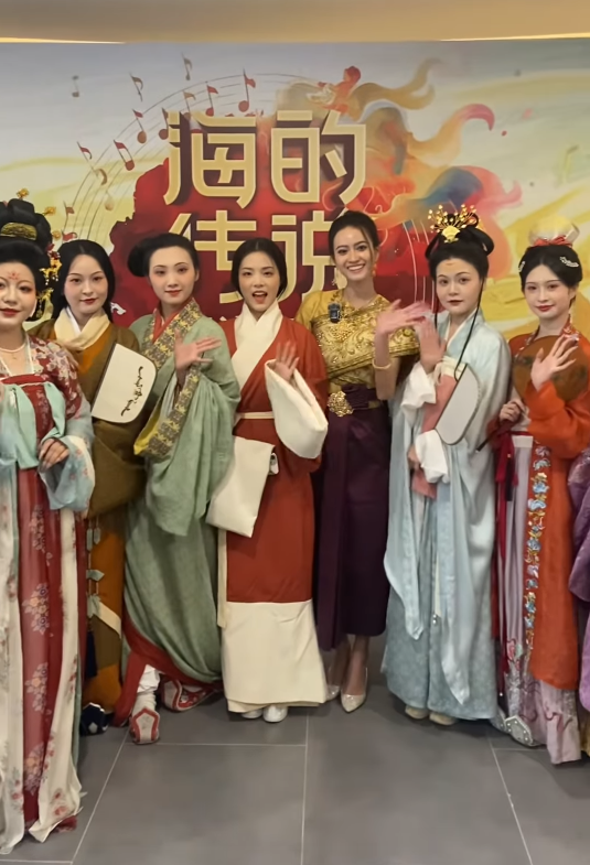 សាន កុសុមៈ ដែលបានឡើងសម្ដែងលើឆាកអន្តរជាតិក្នុងកម្មវិធី «Legends of the Sea» របស់ទូរទស្សន៍ Sansha និងបាននាំយកសម្លៀកបំពាក់ និងក្រមាខ្មែរបង្ហាញលើឆាកអន្តរជាតិ ទទួលបានការកោតសរសើរខ្លាំងពីមហាជន។