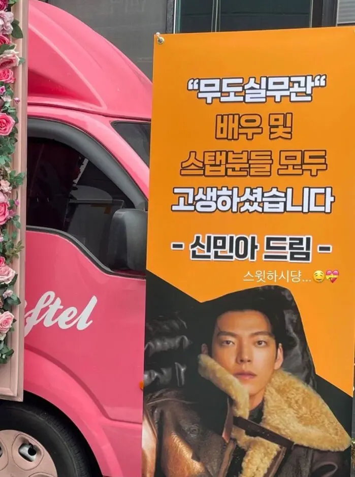 ដើម្បីជាការលើកទឹកចិត្ត និងគាំទ្រដល់មិត្ដប្រុសរបស់ខ្លួនដែលកំពុងថតរឿងថ្មី Shin Mina បានផ្ញើឡានដឹកអាហារ និងភេសជ្ជៈទៅកាន់កន្លែងដែលតារាប្រុស Kim Woobin កំពុងថតរឿង។ ដោយឡាននោះមិនត្រឹមតែសម្រាប់ដឹកអាហារ និងភេសជ្ជៈទេ តែក៏មានការតុបតែងយ៉ាងស្រស់ស្អាតអមជាមួយរូបថតរបស់តារាប្រុស Kim WooBin និងផ្កាស្រស់ជាច្រើនទង។