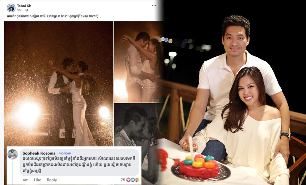 ក្រោយ តាប៊ុយ បង្ហោះរូបភាពរបស់ សុភ័ក្រ កុសុម៉ា និងភ្ជាប់ជាមួយពាក្យពេចន៍ថា “តាមពិតកូនកំលោះសន្សំលុយមិនទាន់គ្រប់ទេ តែខាងកូនក្រមុំថែមលុយការប្ដី“។ ធ្វើឲ្យសាមីខ្លួនទ្រាំមិនបាន ចូលទៅ comment តបភ្លាមៗថា “ឯងលេងយូរៗទៅដូចមិនឲ្យតម្លៃខ្ញុំទាំងពីរអ្នកសោះ សំណេរនេះសរសេរមកគឺអ្នកមិនដឹងគេប្រាកដជាមើលងាយទៅគូដណ្ដឹងខ្ញុំ ហើយមួយទៀតគេបន្ទាបតម្លៃខ្ញុំជាស្ត្រី“។