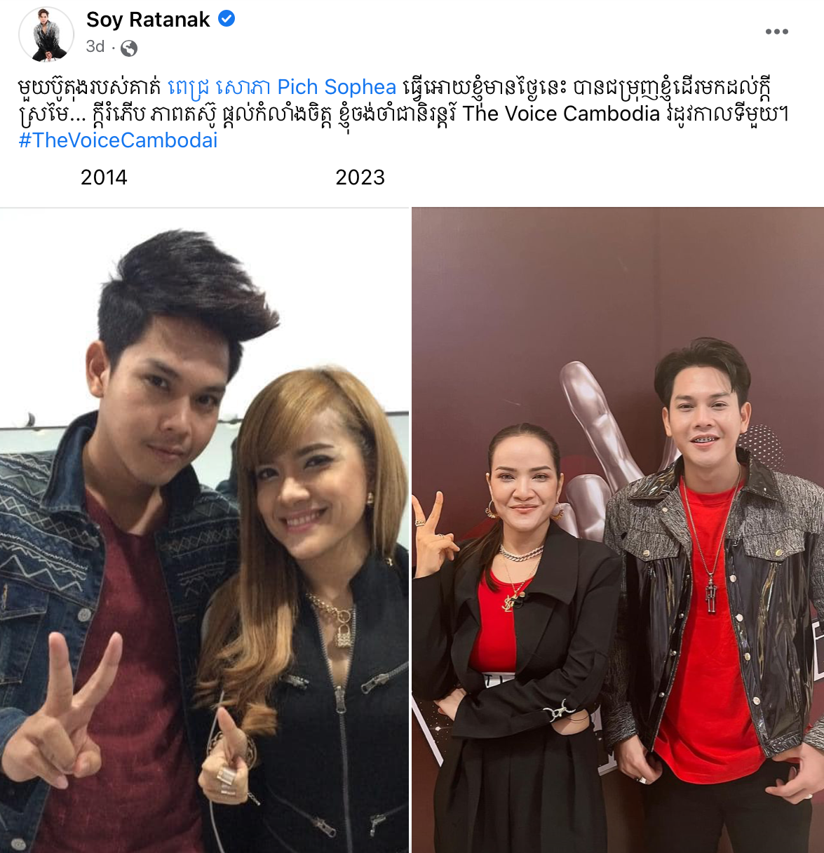 ប៉ុន្មានថ្ងៃមុននេះ តារាចម្រៀងផលិតកម្មហង្សមាស លោក សយ រតនៈ បានគាស់រលឹករឿងអតីតកាលរបស់ខ្លួនជំនាន់ចូលប្រឡង The Voice Cambodia រដូវកាលទីមួយ ឆ្នាំ ២០១៤ ដោយលោកបានបង្ហោះឡើងថា «មួយប៊ូតុងរបស់គាត់ ពេជ្រ សោភា Pich Sophea ធ្វើអោយខ្ញុំមានថ្ងៃនេះ បានជម្រុញខ្ញុំដើរមកដល់ក្ដីស្រមៃ… ក្ដីរំភើប ភាពតស៊ូ ផ្ដល់កំលាំងចិត្ត ខ្ញុំចង់ចាំជានិរន្តរ៍ The Voice Cambodia រដូវកាលទីមួយ»។ នេះប្រៀបដូចជាពាក្យថ្លែងអំណរគុណដល់ តារាចម្រៀង ពេជ្រ សោភា ដែលបានជួយកែប្រែជីវិតលោកឱ្យមានសព្វគ្រប់បែបយ៉ាងដូចសព្វថ្ងៃ។