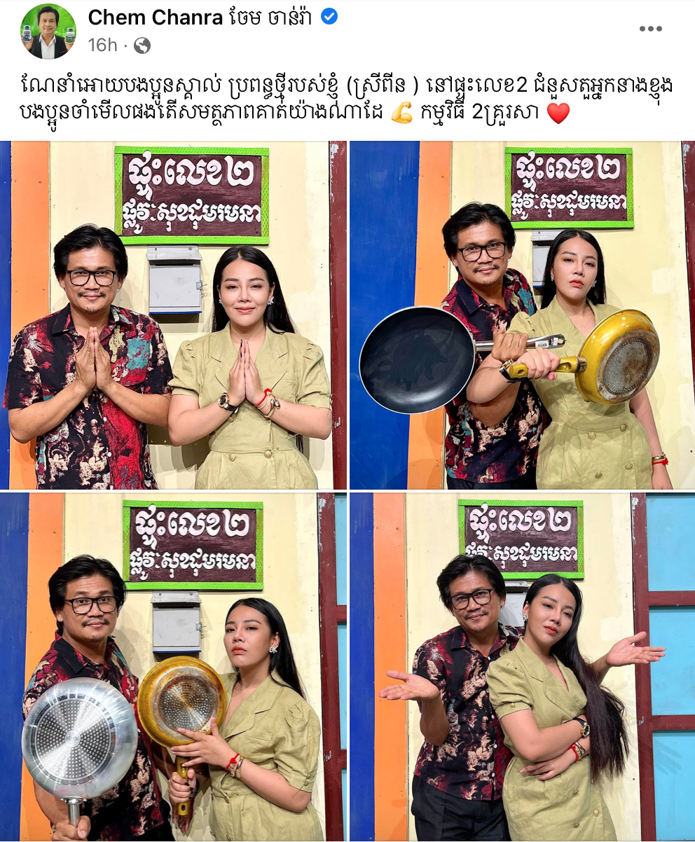 តាមការបង្ហោះជាសាធារណៈលើទំព័រហ្វេសប៊ុក លោក ចែម ចាន់រ៉ា ហៅ ពែកមី បានឱ្យដឹងថា ស្រីពីន នឹងចូលជំនួសតំណែងរបស់អ្នកនាង ខ្ញុង វិញម្ដង ដោយត្រូវសម្ដែងជាតួប្រពន្ធរបស់លោកនៅក្នុងកម្មវិធីកំប្លែង «២គ្រួសារ»។ លោក ពែកមី បានសរសេរថា៖ «ណែនាំឱ្យបងប្អូនស្គាល់ ប្រពន្ធថ្មីរបស់ខ្ញុំ (ស្រីពីន) នៅផ្ទះលេខ2ជំនួសតួអ្នកនាងខ្ញុង បងប្អូនចាំមើលផង តើសមត្ថភាពគាត់យ៉ាងណាដែរ? 💪 កម្មវិធី ២គ្រួសារ ❤️»។