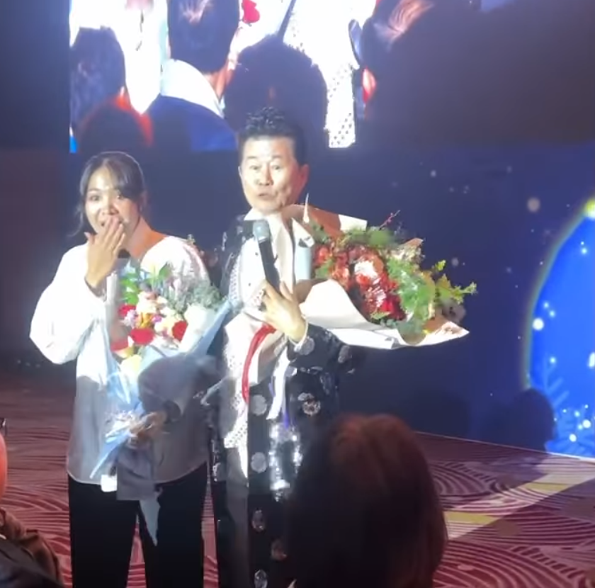 ស្រួង ភាវី បានបង្ហោះវីដេអូ និងរូបភាពជាមួយតារាប្រុសជើងចាស់រូបនោះ ហើយបានសរសេររៀបរាប់ថា «លោកពូផេឈិនអា태진아 ជាតារាចម្រៀងជើងចាស់លំដាប់ប្រទេសកូរ៉េរំភើបនឹងមានមោទនភាពមហាកិត្តិយសមិនថាកូនស្រីនេះទៅដល់ទីកន្លែងណាទេតែងតែលើកតម្កើងនឹងផ្ដល់តម្លៃឲ្យដ៏ខ្ពង់ខ្ពស់ជានិច្ច អរគុណចំពោះក្ដីស្រឡាញ់ដែលពួកគាត់ផ្ដល់ឱ្យខ្ញុំអ្នកចូលរួមកម្មវិធី សុទ្ធតែអ្នកលំដាប់អ្នកមានមហាសេដ្ឋីហើយចំនួននាក់ចូលរួម 1,000 នាក់ចូលរួមកម្មវិធីខនសឺតអស្ចារ្យនេះ»។