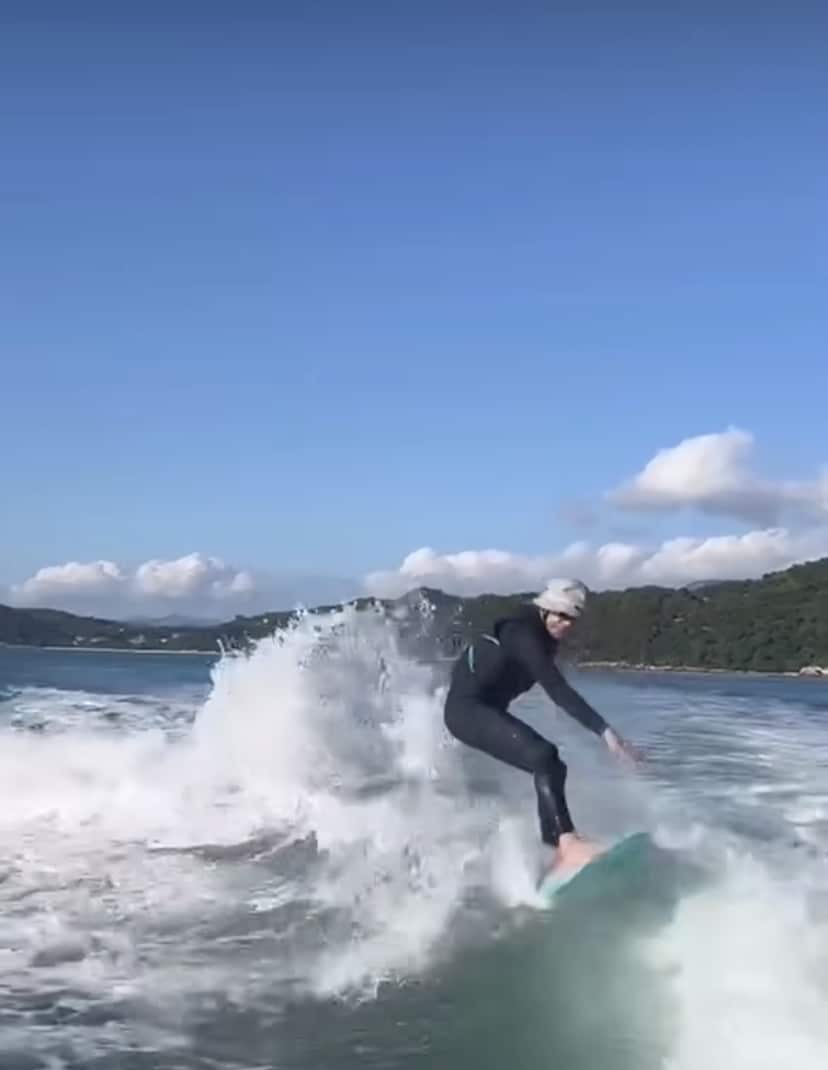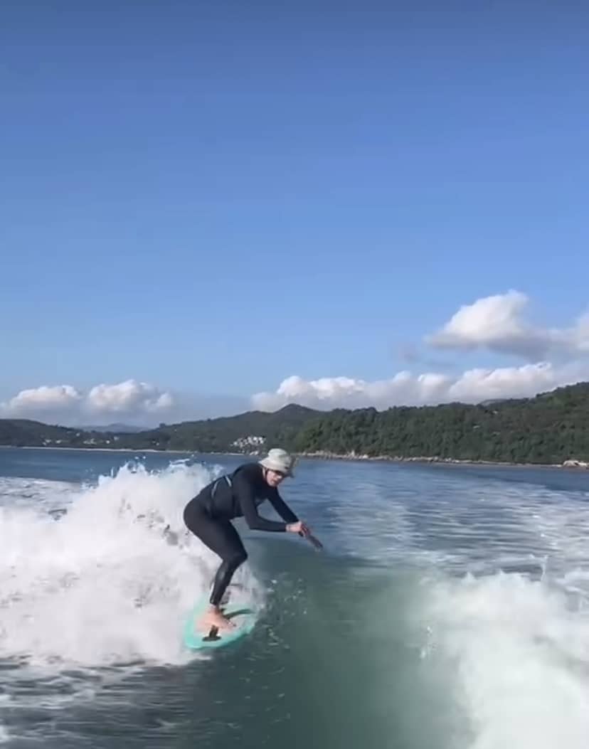 ក្នុងវីដេអូនោះបង្ហាញពីសកម្មភាពរបស់លោកជិះស្គីលើទឹកនៅតំបន់មួយដែលទេសភាពពិតជាស្រស់ស្អាត។ ថ្វីបើអាយុច្រើនហើយក្ដី ប៉ុន្ដែសុខភាពរបស់លោកមើលទៅនៅតែរឹងមាំខ្លាំង ថែមទាំងអាចហក់ចុះឡើងតាមខ្សែទឹកទៀតផង។