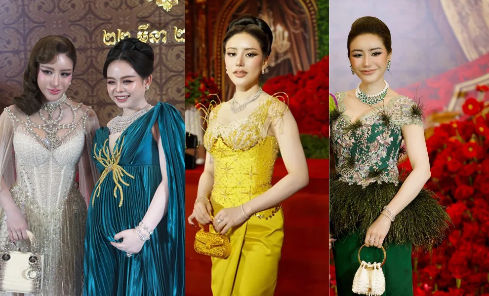 ស្ទីល៍តែងខ្លួនព្រះនាង ជេនណា និងព្រះនាង អេម៉ា ស្រស់ស្អាតម្យ៉ាងម្នាក់ថ្ងៃចូលរួមមង្គលការប្អូន ទេព បូព្រឹក្ស