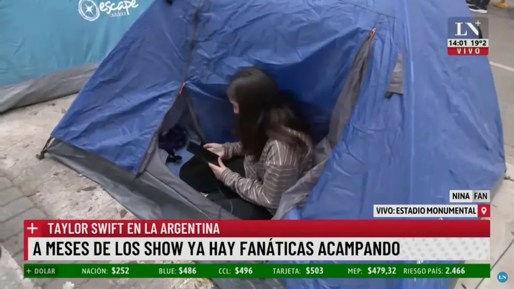 ក្រុមអ្នកគាំទ្ររបស់ Taylor Swift នៅប្រទេសអាហ្សង់ទីន បានបោះតង់នៅខាងក្រៅ River Plate Stadium ដើម្បីរង់ចាំចាប់កន្លែងល្អៗ និងនៅខាងមុខសម្រាប់ មើលការប្រគំតន្ដ្រីរបស់តារាស្រីវ័យ ៣៣ ឆ្នាំរូបនេះ។ ក្រុមអ្នកគាំទ្រខ្លះបានលើកឡើងថាពួកគេបានមកបោះតង់គេងនៅទីនេះ រយៈពេល ៥ ខែមកហើយចាប់តាំងពីខែ មិថុនា ឆ្នាំ ២០២៣។ បើតាមរបាយការណ៍របស់ Pitchfork បានឲ្យដឹងថា ក្រុមអ្នកគាំទ្រដែលបោះតង់រង់ចាំការប្រគំតន្ដ្រីភាគច្រើនជានារីវ័យក្មេង និងមានអាយុចាប់ពី ១៨ ឆ្នាំឡើង។