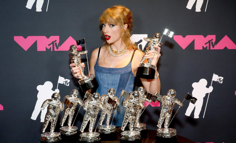 Taylor Swift ជាកំពូលតារាស្រីបរទេសដែលមានភាពល្បីល្បាញម្នាក់ និងជាតារាចម្រៀងស្រីដ៏មានឥទ្ធិពលម្នាក់។ ថ្មីៗ នេះ រូបនាងបានបង្កើតប្រវត្ដិសាស្ដ្រម្ដងទៀតដោយបានប្រមូលពានរង្វាន់ពីកម្មវិធី VMAs 2023 ដល់ទៅចំនួន ៩។