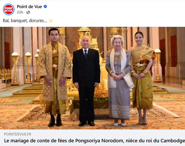 Point de vue ក៏បានបរិយាយពីការរៀបចំយ៉ាងអស្ចារ្យរវាងសែរាជវង្ស និងពាណិជ្ជករវ័យក្មេង ហើយក៏រៀបរាប់ពីសម្លៀកបំពាក់ប្រពៃណីខ្មែរពណ៌មាសជាច្រើនឈុតយ៉ាងអស្ចារ្យថែមទៀតផង។ ក្រៅពីនិយាយពីកម្មវិធីអាពាហ៍ពិពាហ៍ Point de vue ក៏បានស្រាវជ្រាវពីប្រវត្តិគ្រួសារ និងអាជីវកម្មរបស់គ្រួសារព្រះស្វាមីនៃទ្រង់ ពង្ស់សូរិយា។