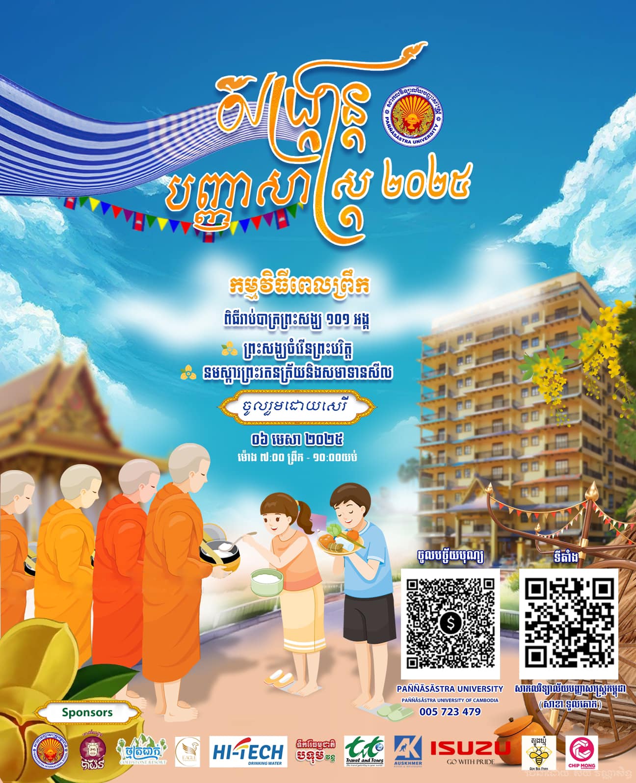 សាកលវិទ្យាល័យបញ្ញាសាស្ត្រនឹងរៀបចំធ្វើកម្មវិធីសង្ក្រាន្តនៅថ្ងៃ៦ ខែមេសា ឆ្នាំ២០២៥ នៅទីតាំងនៃសាកលវិទ្យាល័យបញ្ញាសាស្ត្រកម្ពុជា សាខាទួលគោក ចាប់ពីម៉ោង ៧ព្រឹកដល់១០យប់ ព្រមទាំងមានកម្មវិធីកម្សាន្តសប្បាយៗ និងស្តង់លក់ចំណីអាហារផងដែរ។