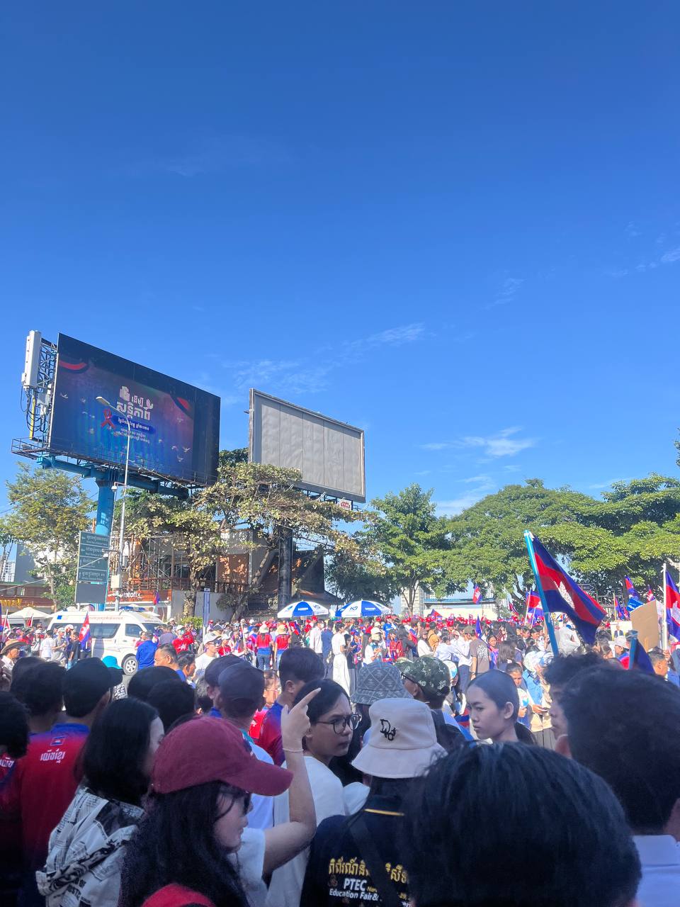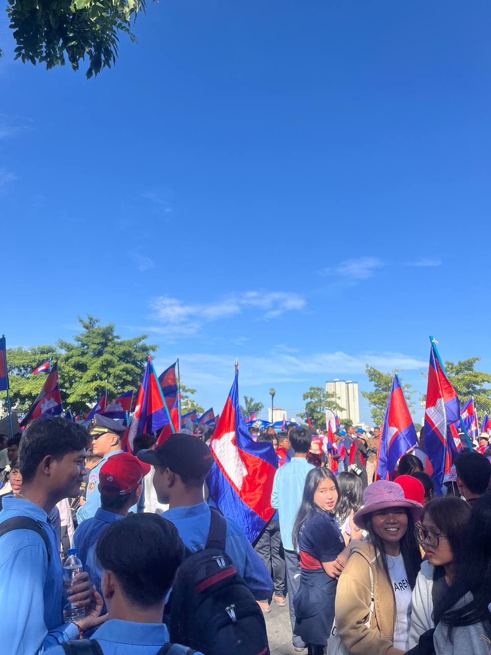 កម្មវិធី ដើរដើម្បីសន្តិភាពដោយចាកចេញពីម្ដុំផ្សាររាត្រី ដែលធ្វើដំណើរដោយថ្មើរជើង ឆ្ពោះទៅសួនច្បារវិមានឯករាជ្យ នាថ្ងៃទី១៨ ខែធ្នូ ឆ្នាំ ២០២៥ នេះមានអ្នកចូលរួមច្រើនកុះករ។ ក្នុងនោះមានទាំងអ្នកសិល្បៈ និងមហាជនទូទៅ សិស្សសាលាមកពីគ្រប់ទិសទីក្នុងរាជធានីភ្នំពេញ។