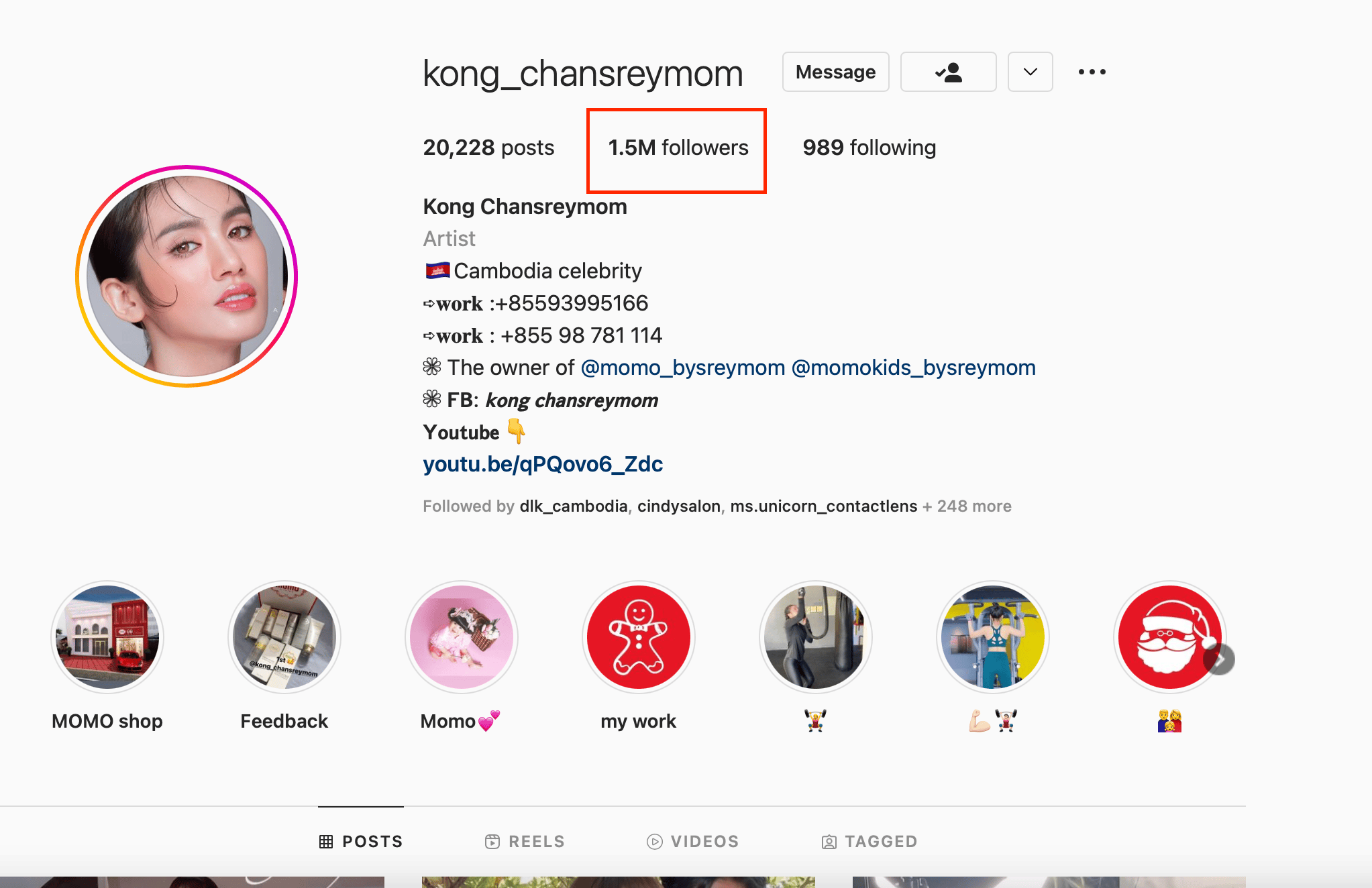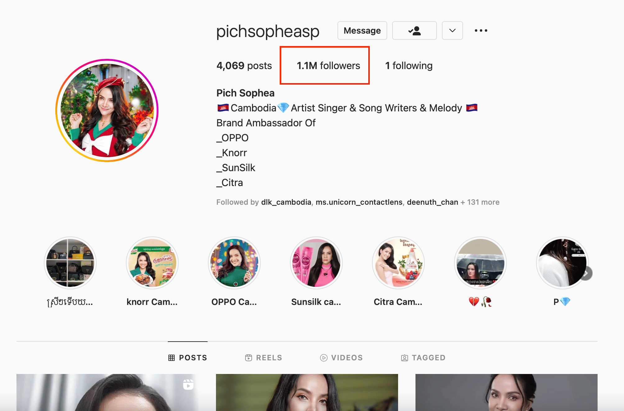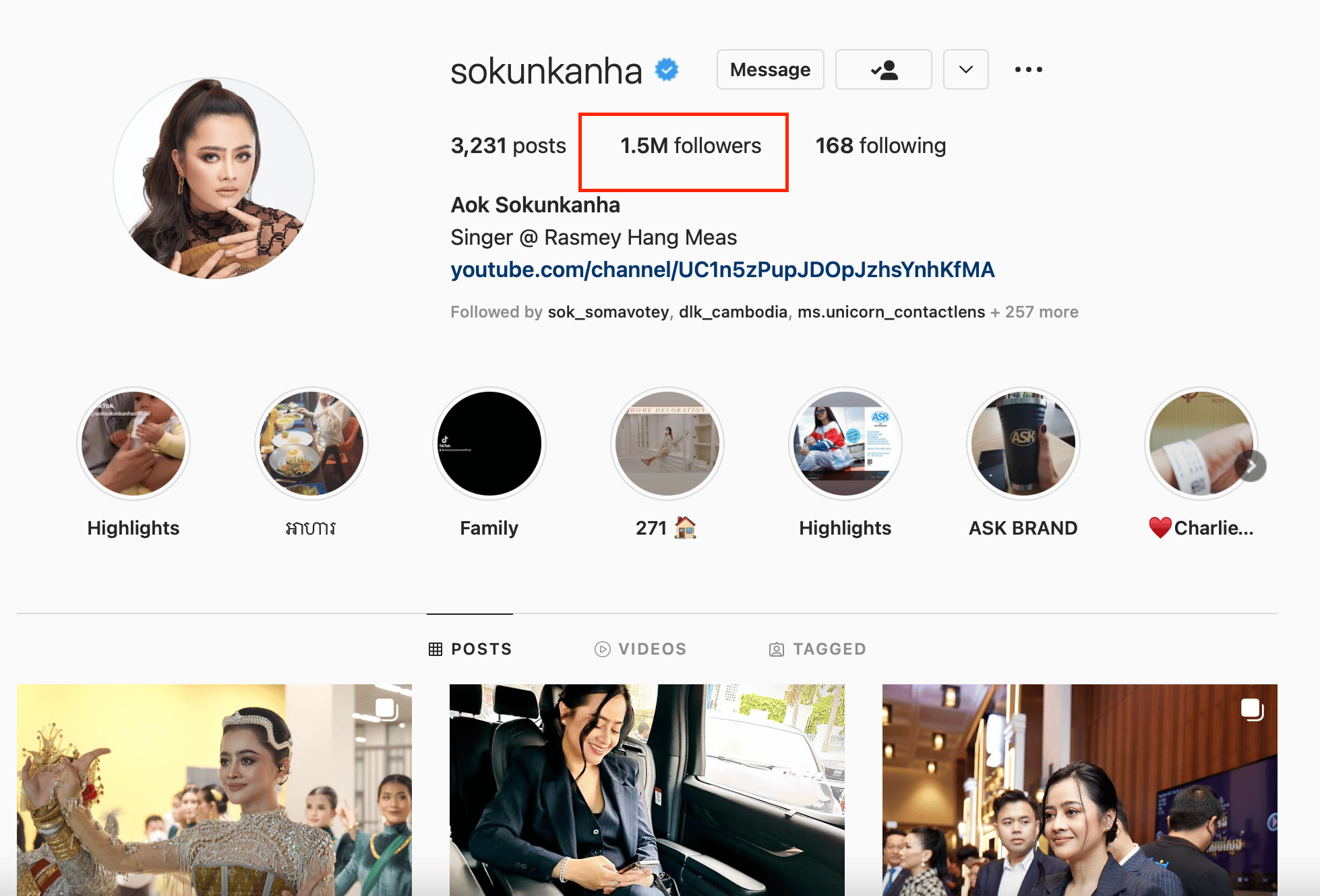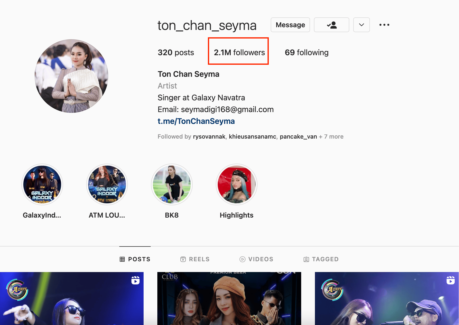 ជារឿងដ៏គួរឱ្យចាប់អារម្មណ៍ ដែលថ្មីៗនេះគេសង្កេតឃើញថា គណនីអ៊ីនស្ត្រាក្រាម (Instagram) ផ្លូវការរបស់តារាចម្រៀងស្រីប្រចាំផលិតកម្ម Galaxy Navatra កញ្ញា តន់ ច័ន្ទសីម៉ា កើនចំនួនអ្នកតាមដាន (follower) ខ្លាំងស្ទើរមិនគួរឱ្យជឿ។