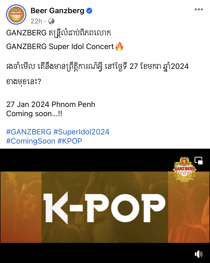 កាលពីថ្ងៃទី ៩ ខែវិច្ឆិកា ឆ្នាំ ២០២៣ ផេកផ្លូវការរបស់ស្រាបៀរ Gangzberg បានបង្ហោះពីព្រឹត្តិការណ៍ប្រគំតន្រ្ដីធំមួយនាដើមឆ្នាំ ២០២៤ គឺ Super Idol Concert។ ការប្រគំតន្ដ្រីនេះ ត្រូវបានប្រកាសធ្វើឡើងនៅថ្ងៃទី ២៧ ខែ មករា ឆ្នាំ ២០២៤ ខាងមុខ នៅឯទីក្រុងកោះពេជ្រ។