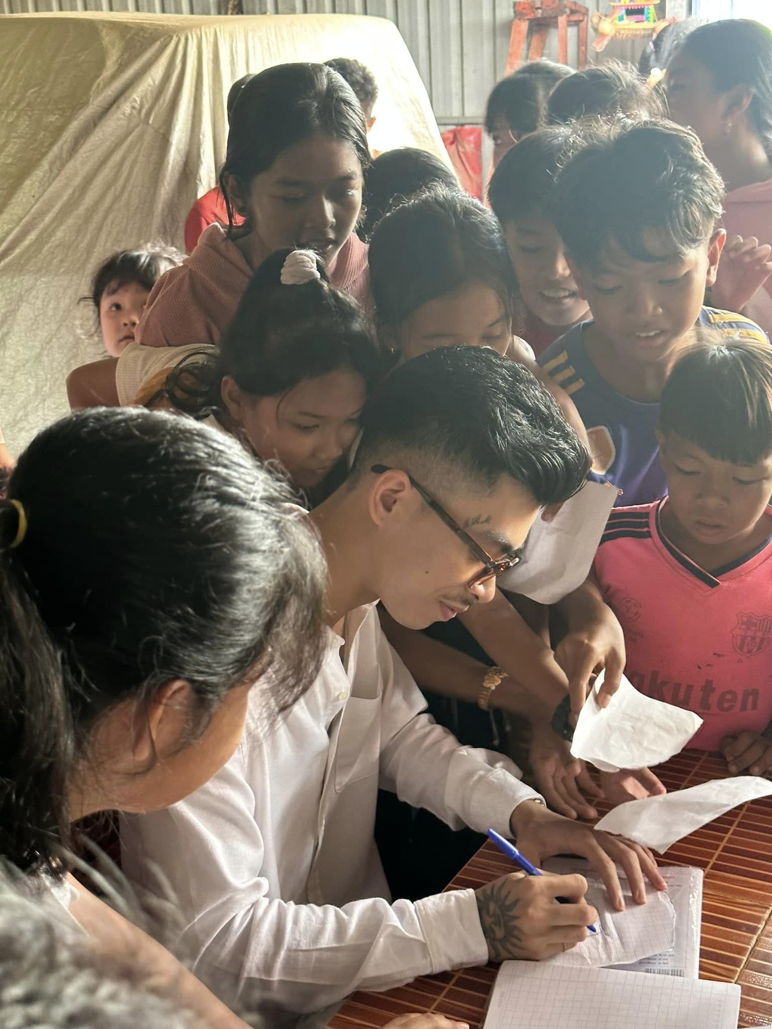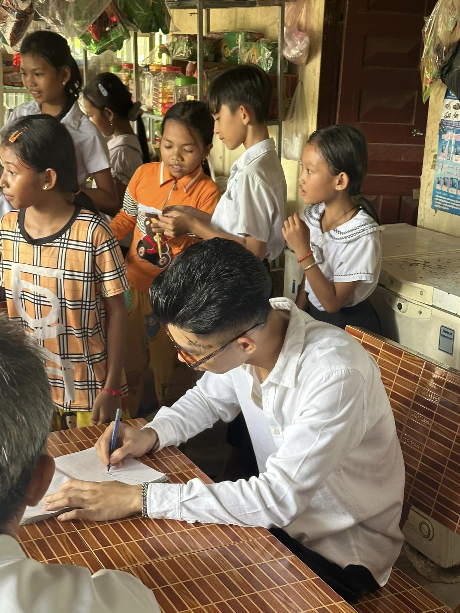 ក្រៅពីផ្ដល់ភាពស្និទ្ធស្នាលជាមួយហ្វេនៗរួចហើយនោះ តារាប្រុសដែលមានប្រភពពីខេត្តព្រះសីហនុមានចិត្តជ្រះថ្លា ជូនបច្ច័យដល់មនុស្សចាស់នៅវត្ត ធ្វើឲ្យហ្វេនកោតសរសើរគ្រប់ៗគ្នា។ បើសង្កេតឲ្យឃើញថា ពេលជួបហ្វេនលោកក៏បានចុះហត្ថលេខាឲ្យក្មេងៗដែលជួបនៅវត្ត ធ្វើឲ្យពួកគេរំភើបចិត្ត ញញឹមបិទមាត់មិនជិតទេ។