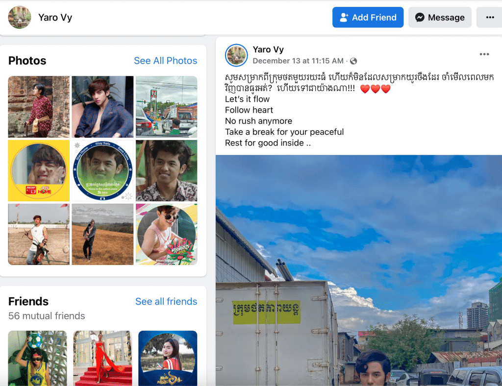 ទន្ទឹមនឹងនោះ កាលពីថ្ងៃទី១៣ កន្លងទៅ គណនីហ្វេសប៊ុកផ្លូវការរបស់ ពិធីករវ័យក្មេងមានប្រជាប្រិយភាពរូបបានបានប្រកាសសារជាថ្មីថា ខ្លួនសុំផ្អាកក្នុងការថតមួយរយៈ ដើម្បីឱ្យអ្វីគ្រប់យ៉ាងប្រសើរឡើង។ វី យ៉ារ៉ូ រៀបរាប់ថា «សូមសម្រាកពីក្រុមថតមួយរយៈធំ ហើយក៏មិនដែលសម្រាកយូរចឹងដែរ! ចាំមើលពេលមកវិញបានធូរអត់? ហើយទៅជាយ៉ាងណា!!! Let’s it flow. Follow heart. No rush anymore. Take a break for your peaceful. Rest for good inside»។