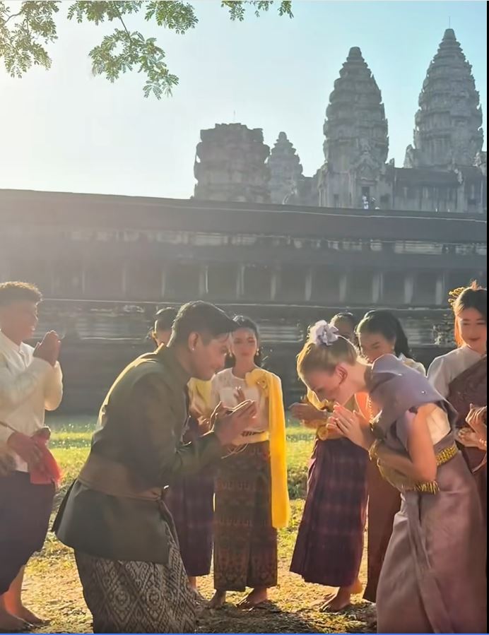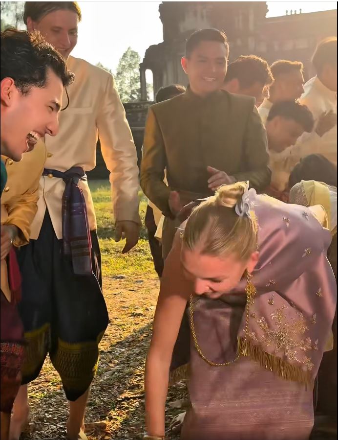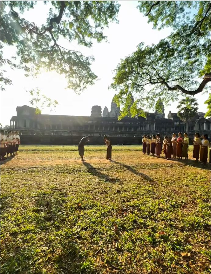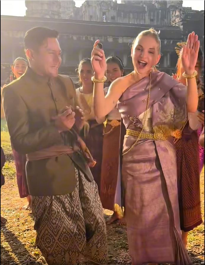 ទិដ្ឋភាពនៃការលេងល្បែងប្រជាប្រិយខ្មែរ បោះអង្គញ់ អមជាមួយបទចម្រៀងចូលឆ្នាំនៅបរិវេណប្រាសាទអង្គរវត្តដែលមានការចូលរួមពីសំណាក់តារាសម្ដែងស្រអែមស្រស់ នី មុនីនាថ និងតារាចម្រៀង ខេមរៈ សិរីមន្ត ព្រមជាមួយជនបរទេសប្រុស-ស្រី ជាច្រើនរូបកំពុងទទួលបានការចាប់អារម្មណ៍ពីសំណាក់មហាជន។