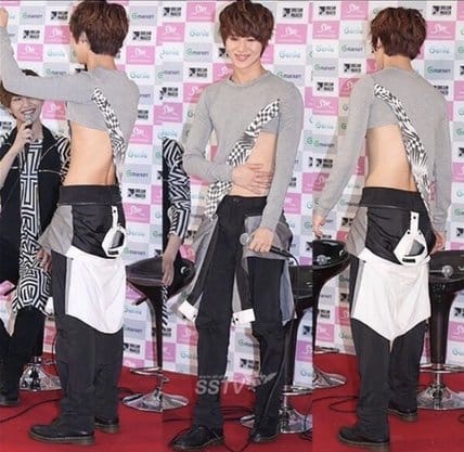 ជាសម្លៀកបំពាក់របស់សមាជិកក្រុម SHINee គូទខោខាងក្រោយបែរជាមានកអាវ ហើយអាវបែរជាវៀលចេញសាច់រហូតពាក់កណ្ដាលខ្លួន ម៉ូតនេះពិតជាប្លែកមិនធម្មតា។